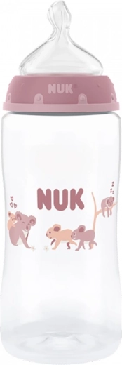 NUK First Choice Temperature Control 300 ml is een betrouwbare babyfles met een slimme temperatuuraanduiding die van kleur verandert afhankelijk van de warmte van de drank. Zodra de inhoud te heet is, verandert de indicator tussen de markeringen van blauw naar wit. Zo kun je je baby veiliger en met meer gemoedsrust voeden.