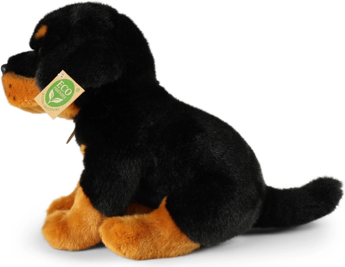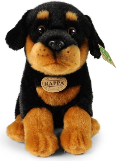 Schattige en realistisch vormgegeven pluchen rottweiler 30 cm uit de ECO-collectie van RAPPA, gemaakt van kwalitatieve en veilige materialen met een vulling van gerecyclede PET-flessen. Een heerlijk zachte knuffelvriend en decoratie, geschikt voor kinderen vanaf de geboorte.