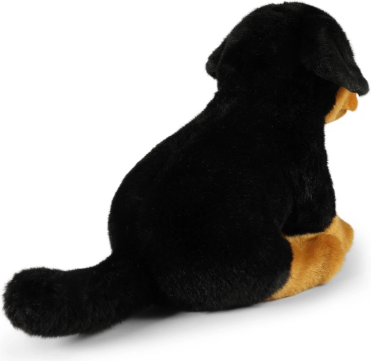 Precies stikwerk, natuurgetrouwe kleuring en hoogwaardige materialen geven de pluchen rottweiler een authentieke uitstraling waar kinderen en volwassenen dol op zijn.