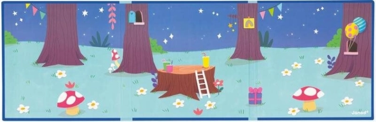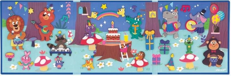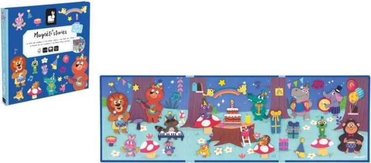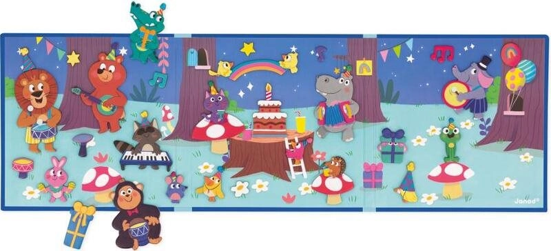 Ontdek de wereld van verjaardagsplezier met het magnetische boek van JANOD, waarmee kinderen ontelbare eigen scènes en verhalen kunnen creëren. Dankzij de stevige magnetische achtergrond en 30 kleurrijke magneten met dieren is spelen eenvoudig, intuïtief en maximaal creatief.