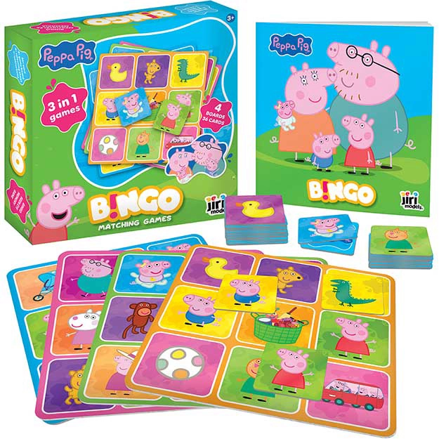 Geniet van gezinsplezier met de favoriete personages uit PEPPA PIG. Deze kinderversie van bingo is ontworpen om gemakkelijk te begrijpen te zijn, snel te spelen en vol ontdekkingsvreugde. Dankzij drie spelwijzen vervelen kinderen zich niet en kunnen ze concentratie, oog voor detail en spelstrategie oefenen.