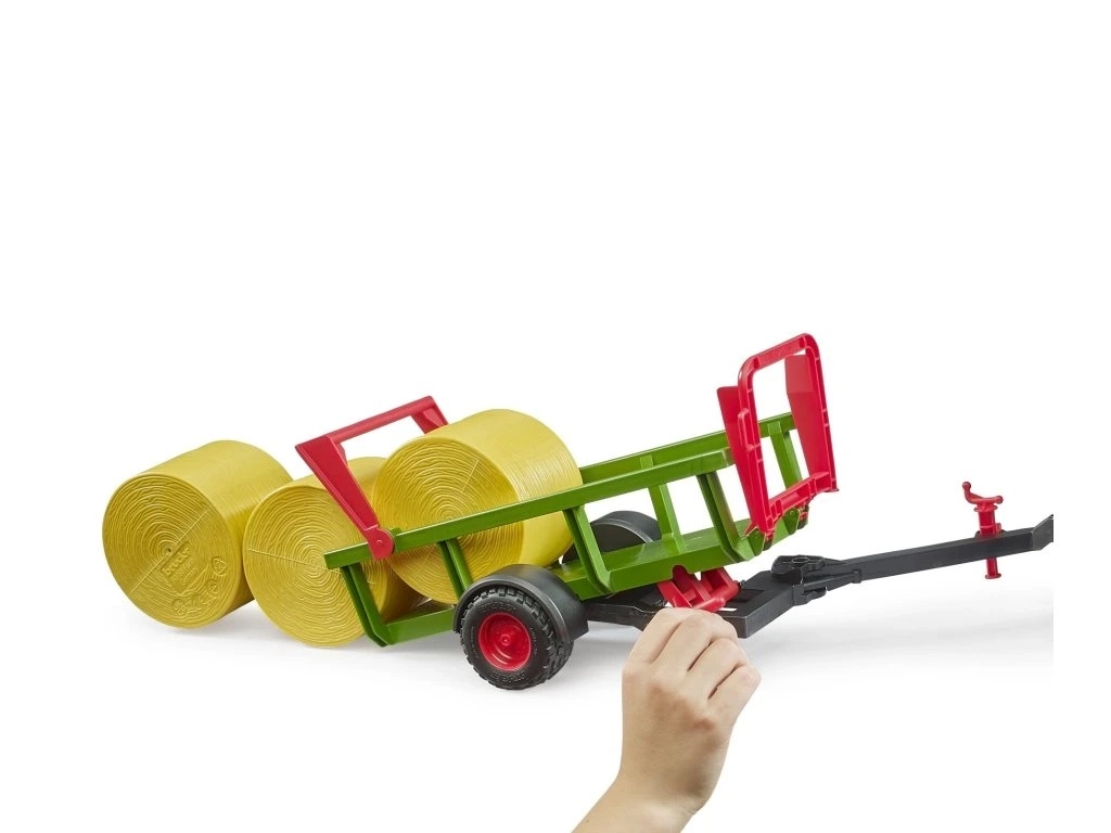 Het model is volledig compatibel met BRUDER-tractoren (series 1000 t/m 3000) en met rondebalenpersen met de typische BRUDER-trekhaak. De balen zijn inbegrepen, zodat niets een direct spel in de weg staat en motoriek, fantasie en interesse in techniek worden gestimuleerd.