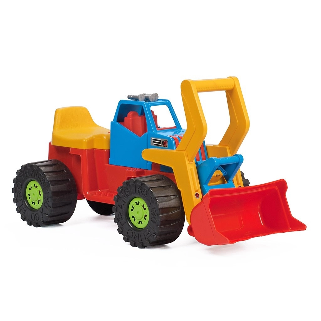 Kinderen kunnen de laadbak mechanisch heffen en kiepen, zand of speelgoed scheppen en spelen als kleine bouwers.