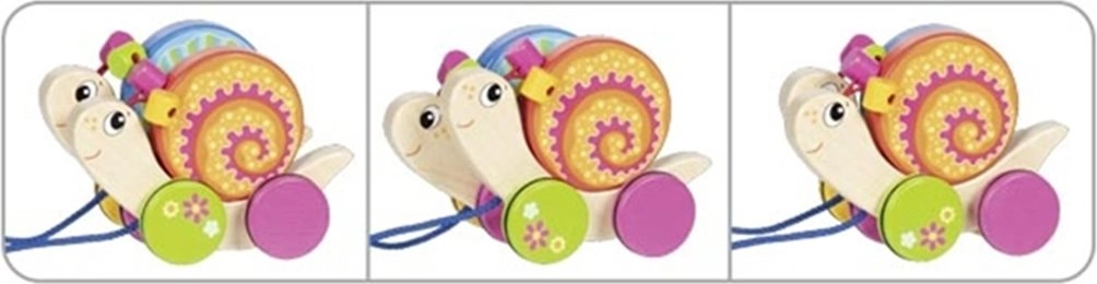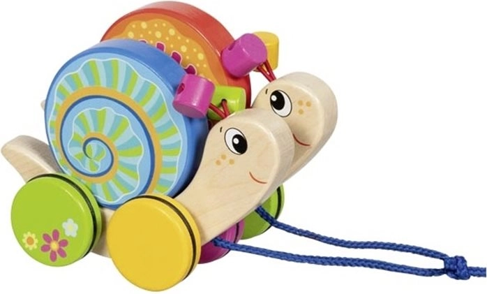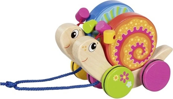 Schattig houten trekspeelgoed met twee slakken, Willi en Milli, is de ideale metgezel voor de eerste stapjes. Dankzij de stabiele constructie, gerubberde wielen voor stille en soepele beweging en veilige, niet-giftige kleuren stimuleert het kinderen tot actieve beweging en de ontwikkeling van grove en fijne motoriek.