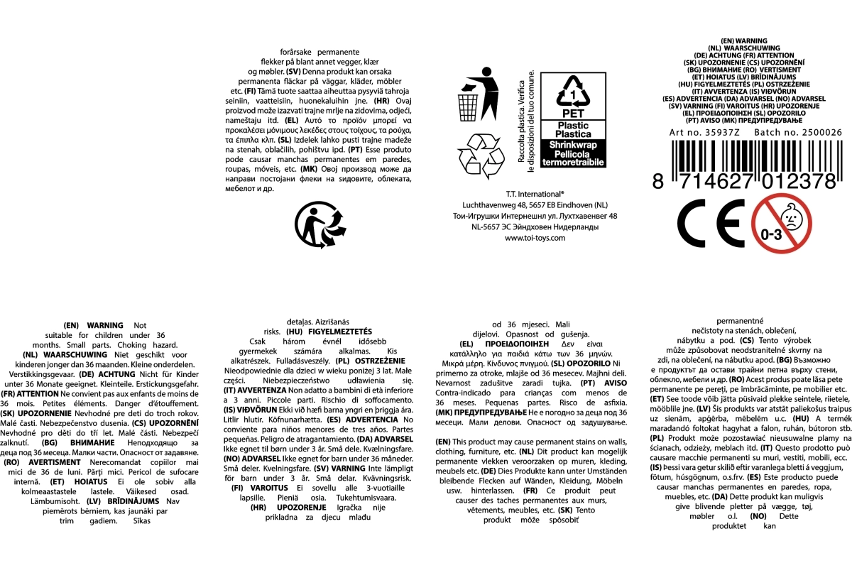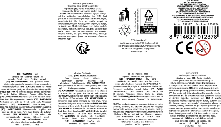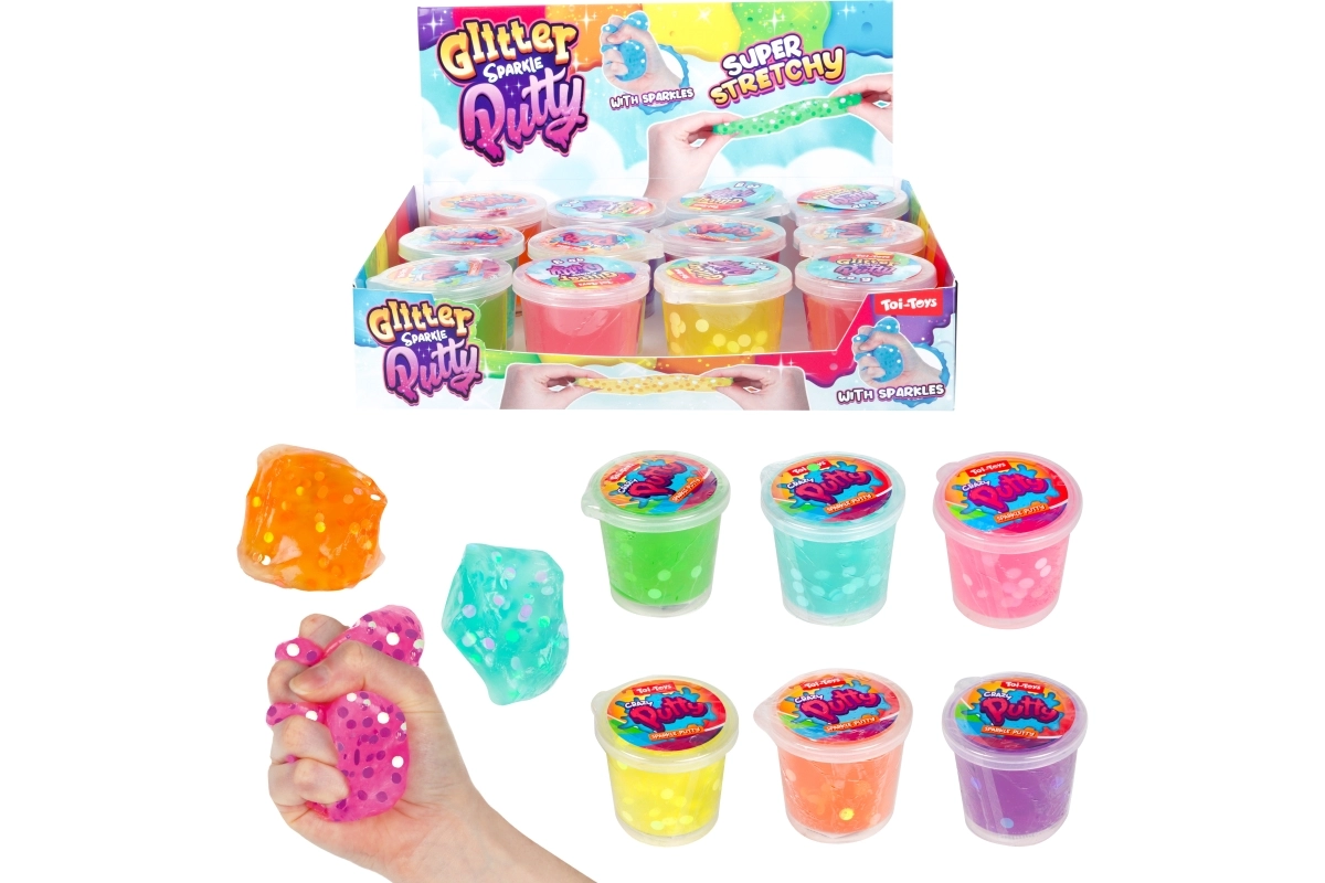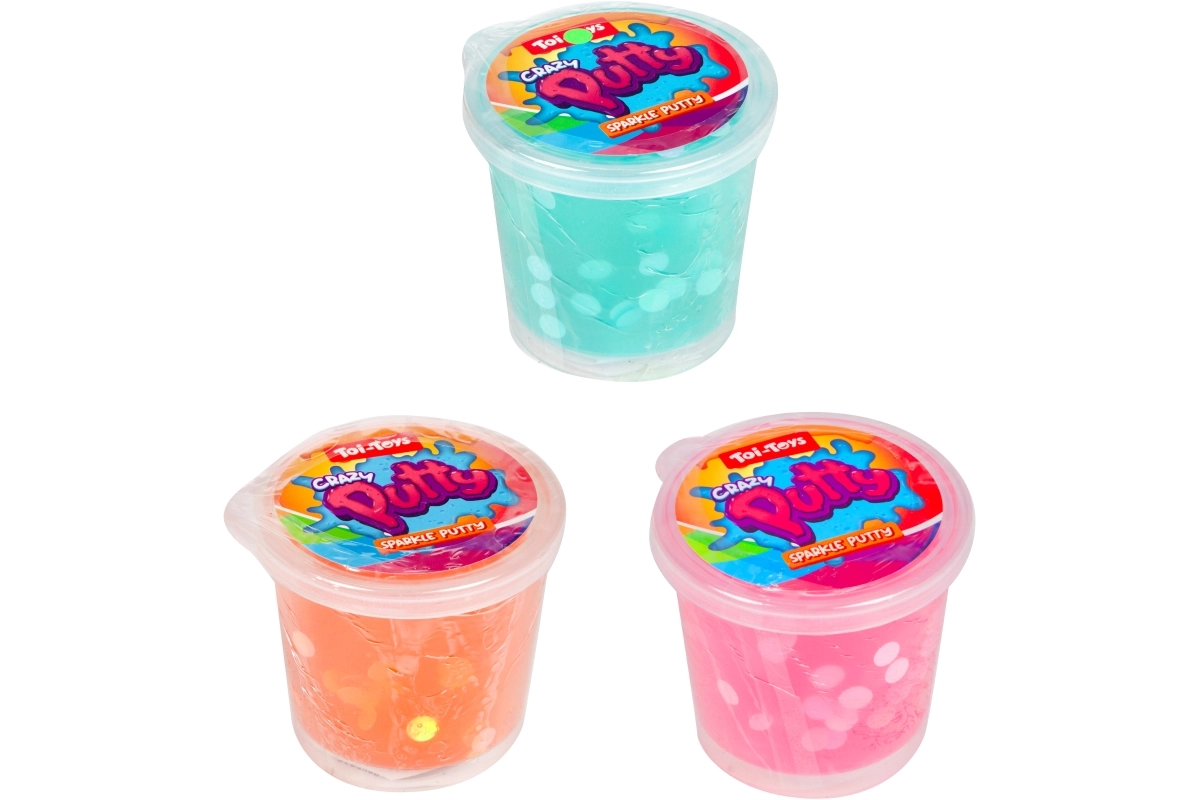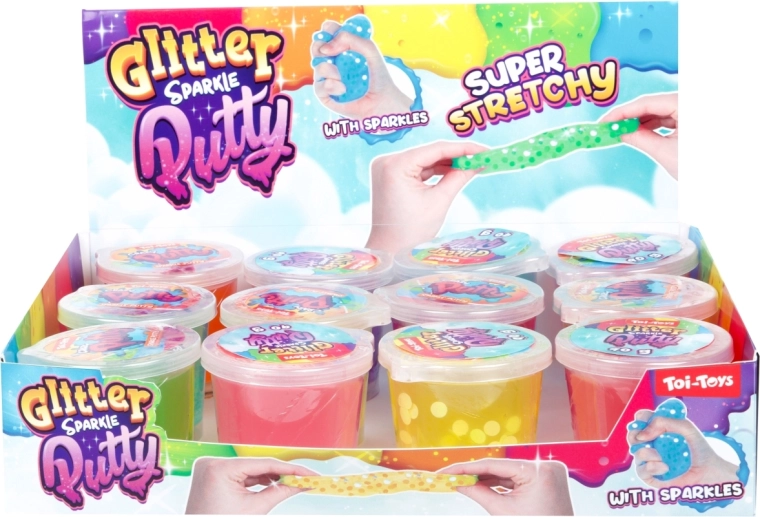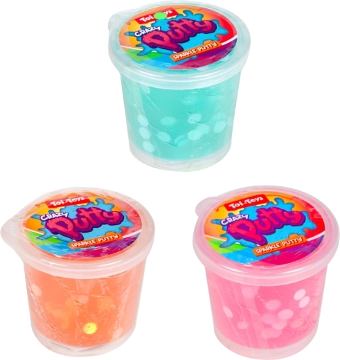 Elke stuk wordt geleverd in een transparant plastic potje met compacte afmetingen van 6 × 6 cm, dat de slijm vers en schoon houdt. Dankzij het glitter- en confettieffect ziet het er zeer aantrekkelijk uit en nodigt het uit tot verder spelen. Kleuren worden geleverd in verschillende tinten afhankelijk van de actuele beschikbaarheid.