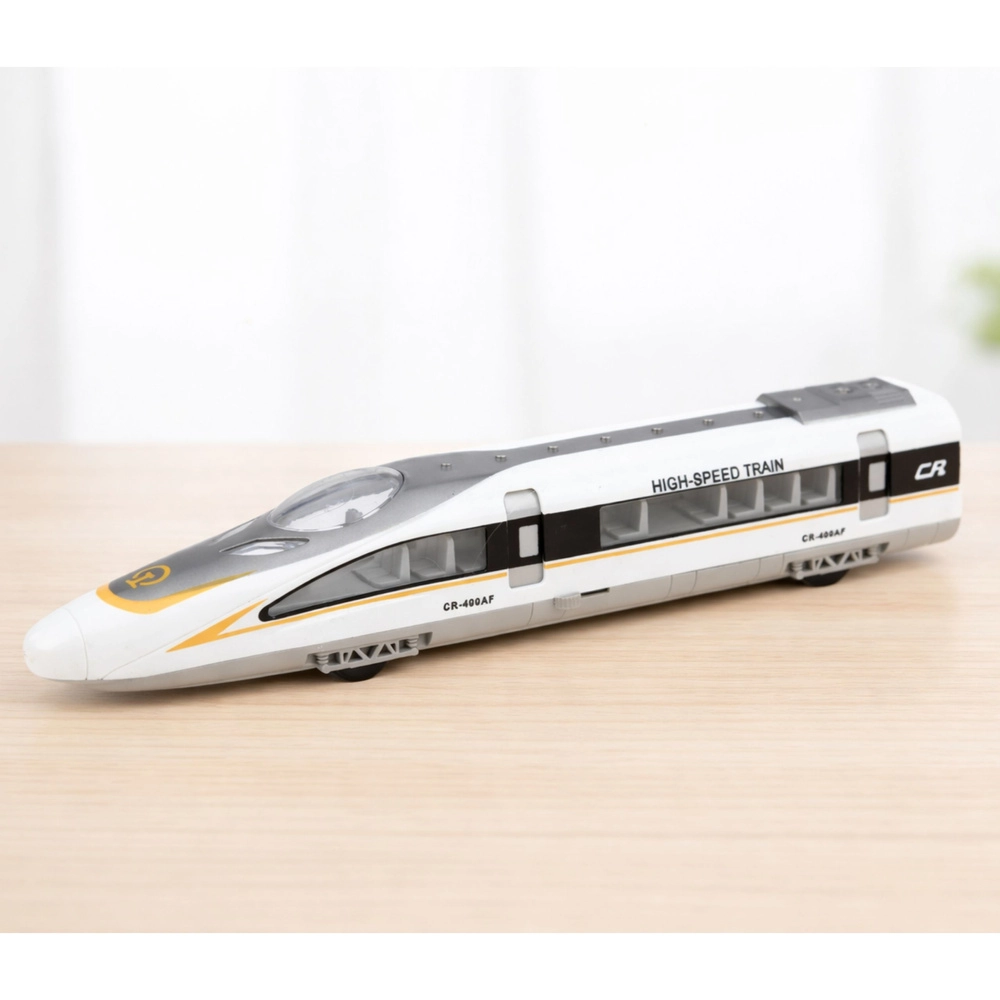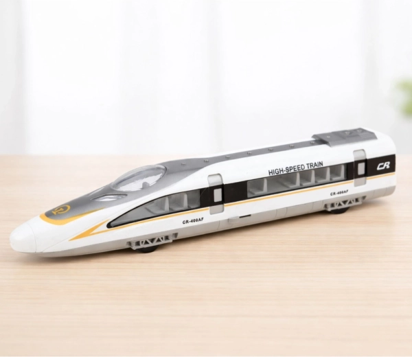 De hogesnelheidstrein is geïnspireerd op moderne sneltreinen en valt op door zijn aerodynamische silhouet en zorgvuldig uitgewerkte details. Geïntegreerde verlichting en geluid versterken de rijbeleving, terwijl de inertie- (push-and-go) aandrijving na een duwtje vanzelf doorgaat.