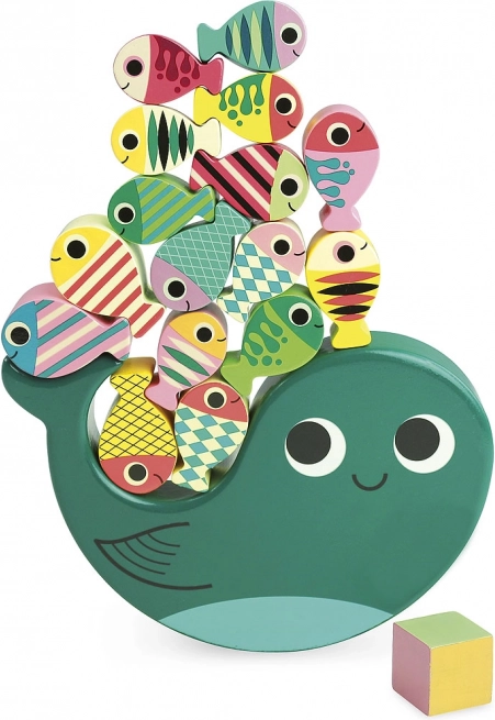 Stap visjes op de walvis zonder dat hij omvalt! Dit spel is niet alleen heel leuk, maar stimuleert ook de fijne motoriek en oog-handcoördinatie van kinderen. Hoogwaardige materialen en een milieubewuste productie verzekeren dat het spel niet alleen veilig is, maar ook vriendelijk voor het milieu.