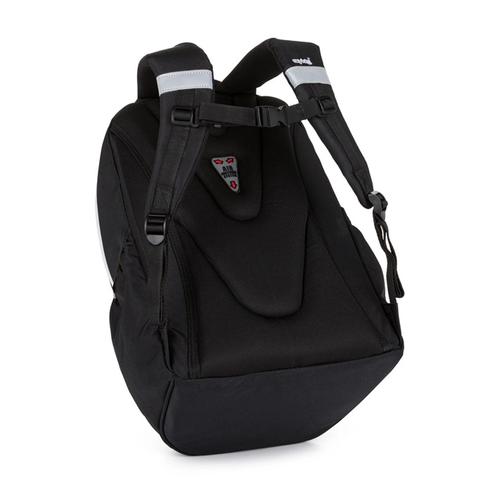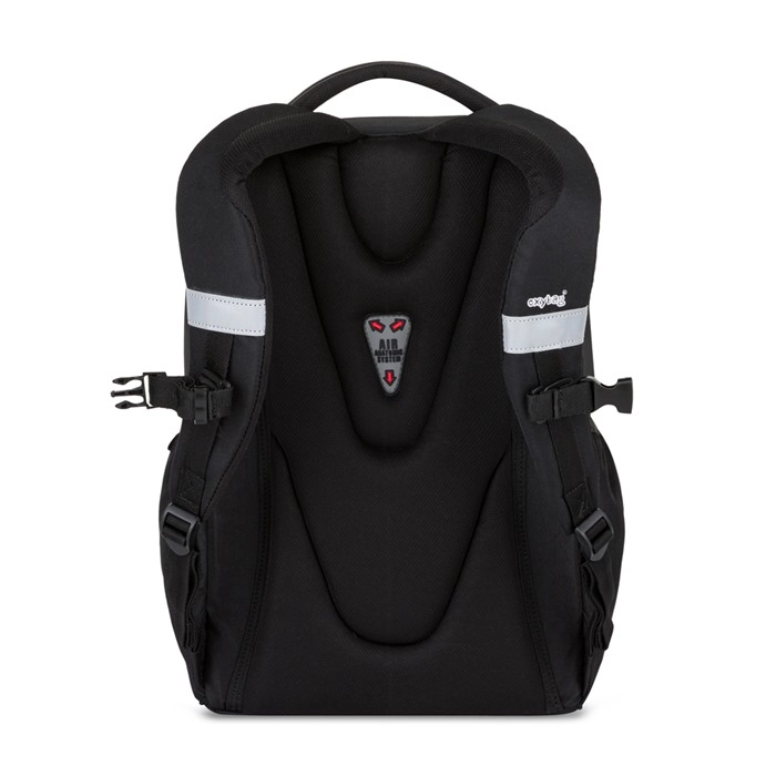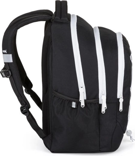 Lichte en duurzame studentenrugzak OXY Touch BW voor scholieren vanaf groep 5 met drie vakken, gewatteerde, ademende rug, laptopvak en reflecterende elementen voor meer veiligheid. Dankzij de verstelbare schouder- en borstriemen, de verstevigde waterdichte bodem en de zijvak voor een fles is hij ideaal voor school en vrije tijd.