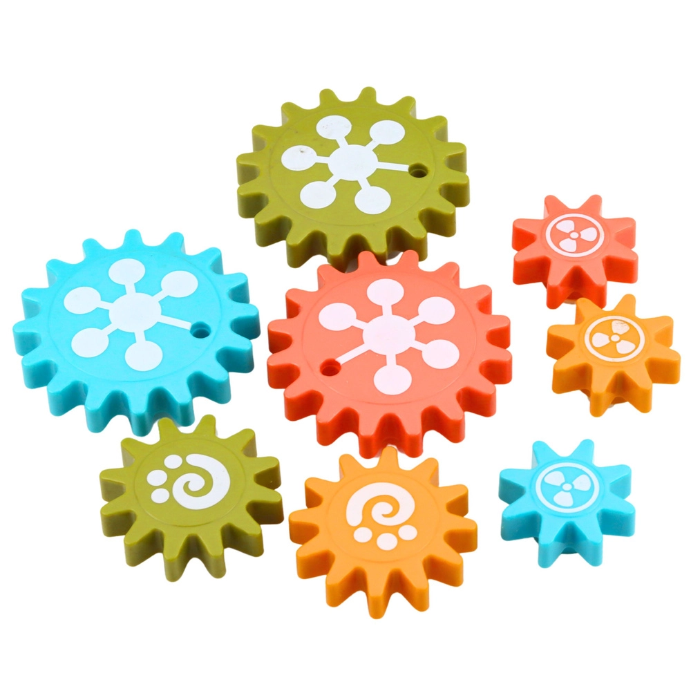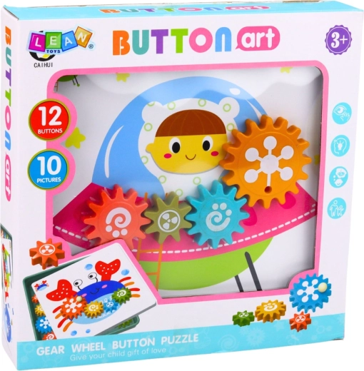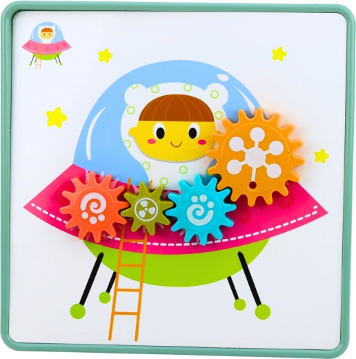 Ontdek een leuke en leerzame game voor kleine ingenieurs! Deze creatieve mozaïek met tandwielen stimuleert de fijne motoriek, het logisch denken en het begrip van oorzaak en gevolg. Kinderen plaatsen kleurrijke tandwielen op geïllustreerde ondergronden, verbinden ze en brengen met één draai het hele geheel in beweging.