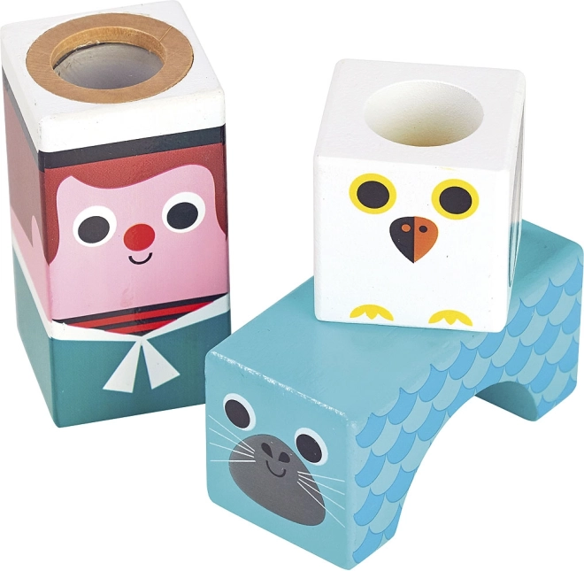 Sensorische houten blokjes met zeemotieven geven kinderen plezier in het ontdekken van vormen, kleuren en geluiden. Door te schudden en te stapelen oefenen kinderen hun grijpreflex, coördinatie en concentratie, terwijl de verschillende geluidelementen de luistervaardigheid ondersteunen. De illustraties van Ingela P. Arrhenius geven de set een unieke retro-uitstraling en een speels karakter.