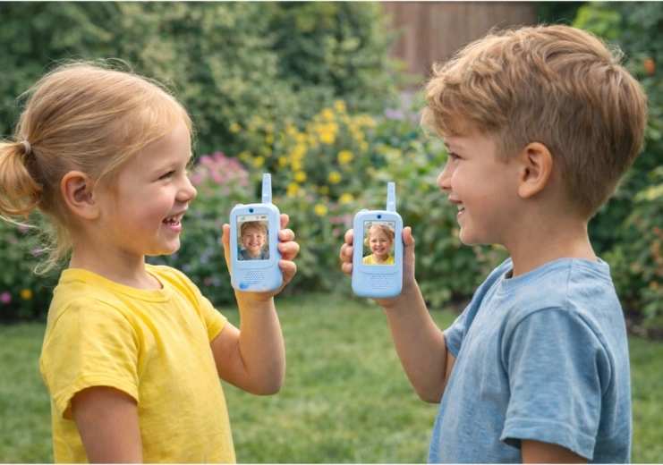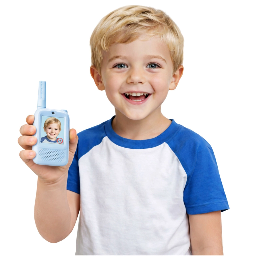 Geef kinderen leuke en veilige communicatie, thuis én buiten. Deze blauwe kinderwalkietalkies bieden niet alleen klassieke druk‑en‑praat (PTT) verbinding, maar ook videogesprekken op het ingebouwde display, foto's maken en video's opnemen. Het eenvoudige menu met taalkeuze maakt de bediening gemakkelijk, zelfs voor de allerkleinsten.