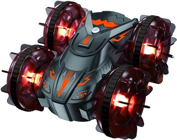 Geniet van eindeloze avonturen met de amfibische RC offroad DRIVERO. Dit model is gemaakt voor plezier op het land, in plassen en in het zwembad. De duurzame constructie weerstaat schokken en slimme zelf-omkering zorgt ervoor dat het voertuig blijft rijden. LED-verlichting laat de transparante wielen oplichten en maakt avondritten tot een lichtshow.