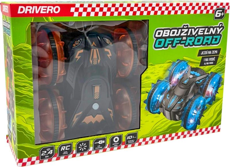 Beleef actievol rijden waar je maar wilt! De DRIVERO RC amfibische offroad kan over terrein én door water, heeft 2,4 GHz storingsvrije bediening, LED-verlichting, USB-opladen en een snelheid boven 10 km/u. Dankzij de robuuste constructie kan hij na een botsing omdraaien en verder rijden. Perfecte keuze voor kinderen en volwassenen.
