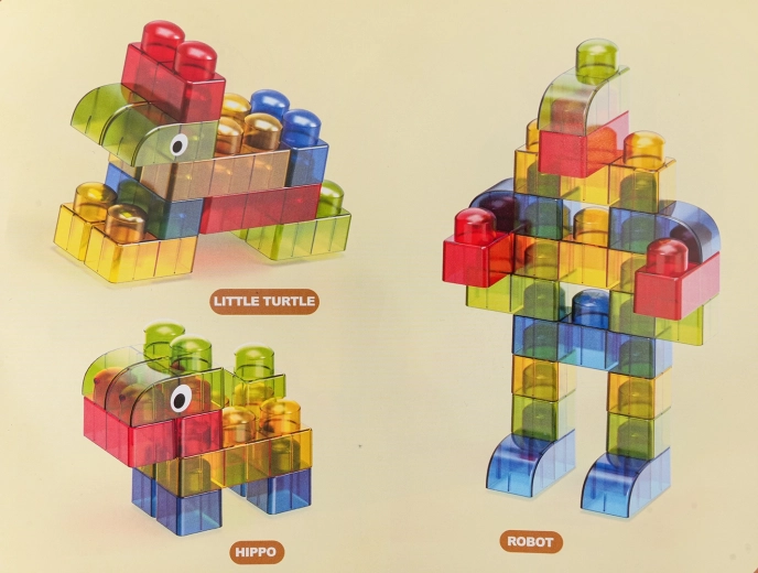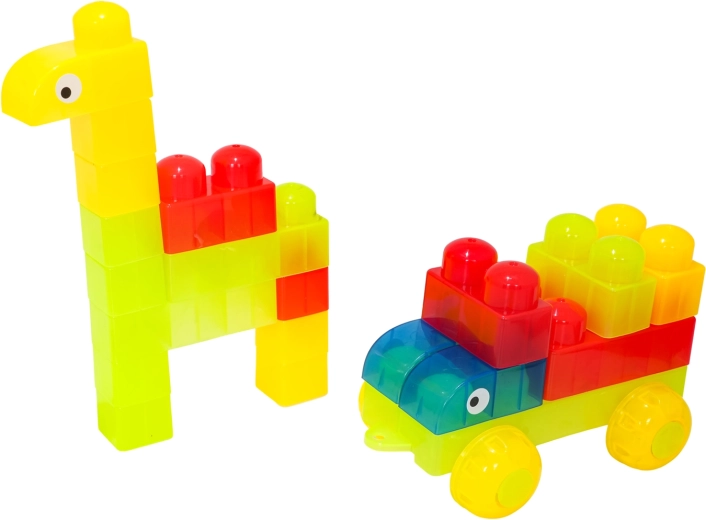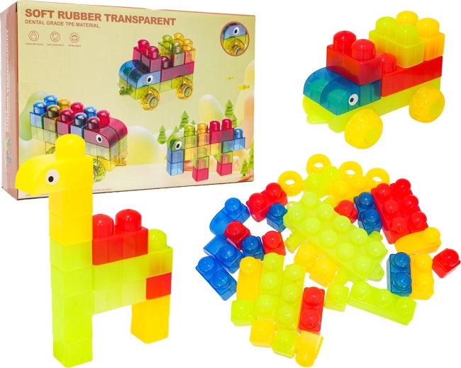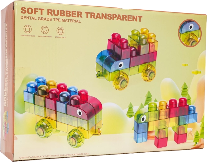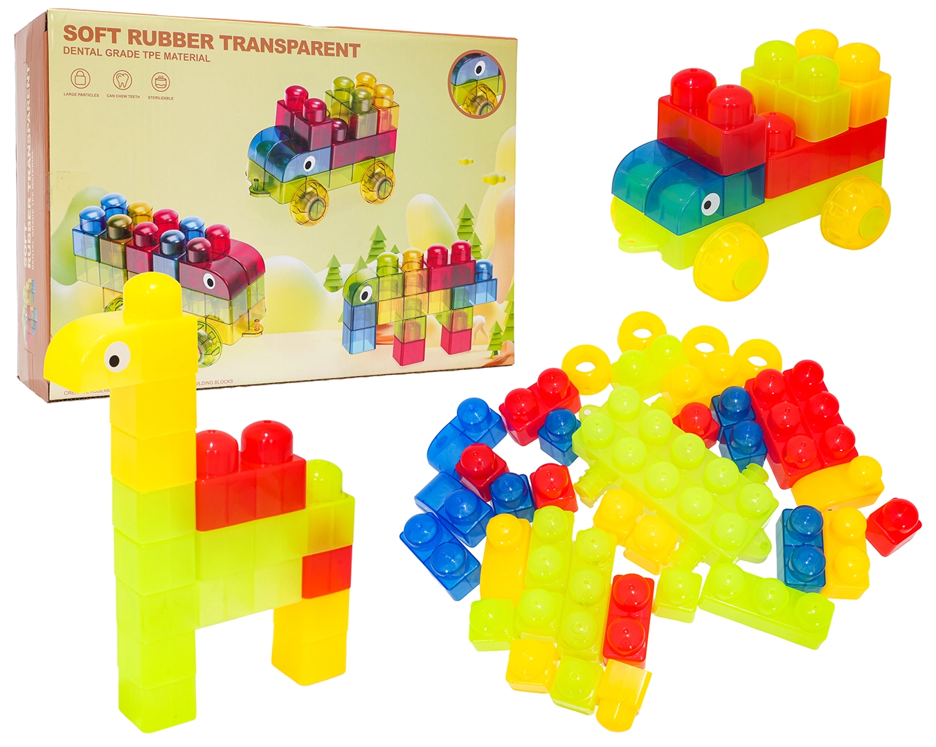 Ontdek de leuke set voor de allerkleinsten: zachte gelblokjes van TPE in een set van 37 onderdelen, geschikt vanaf 12 maanden. De onderdelen zijn transparant, veilig en eenvoudig te koppelen, zodat kinderen voertuigen, dieren en fantasievormen kunnen bouwen en daarbij creativiteit en fijne motoriek ontwikkelen.