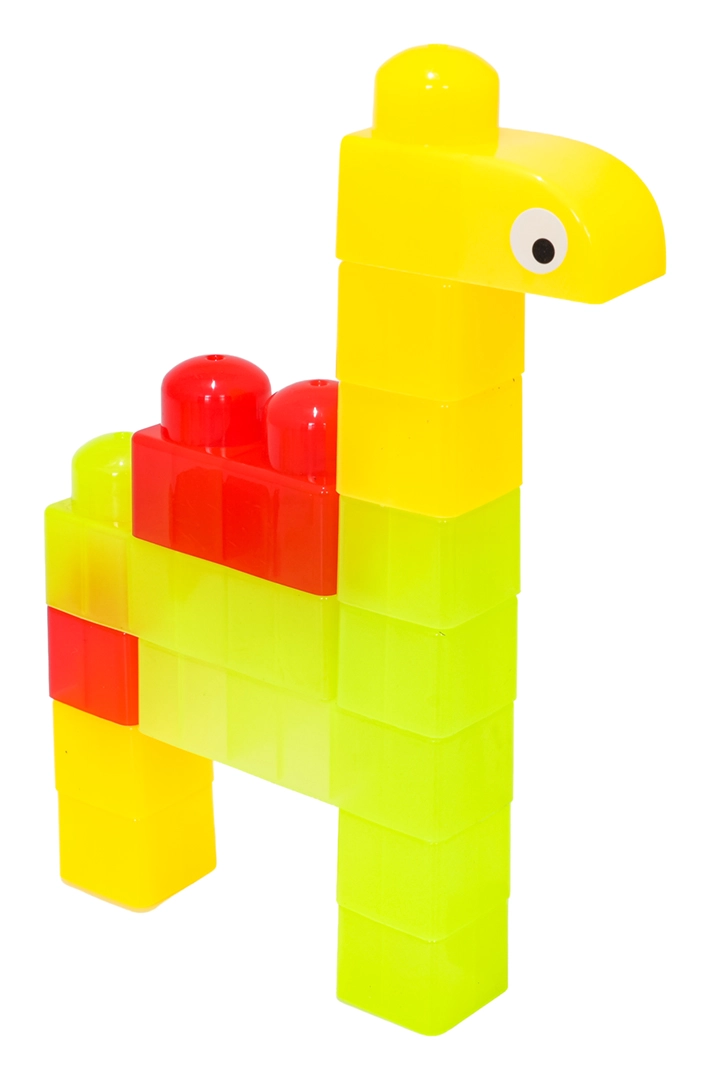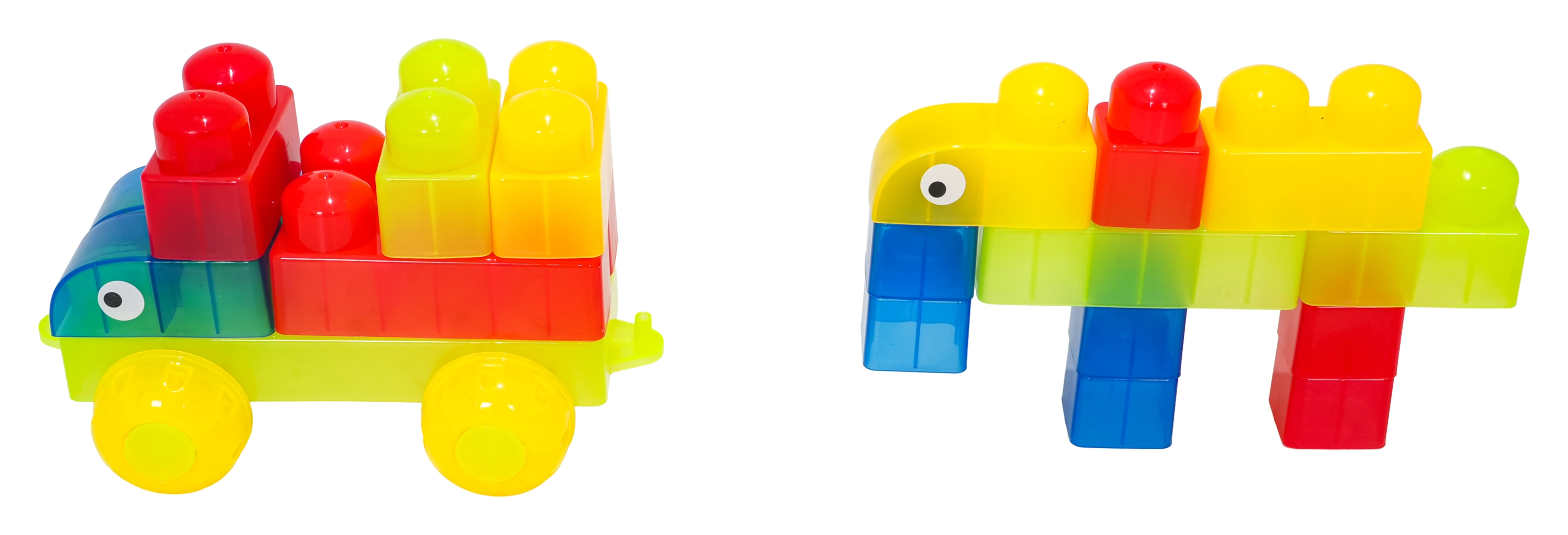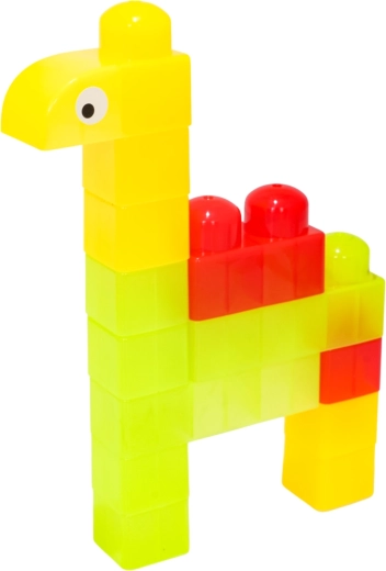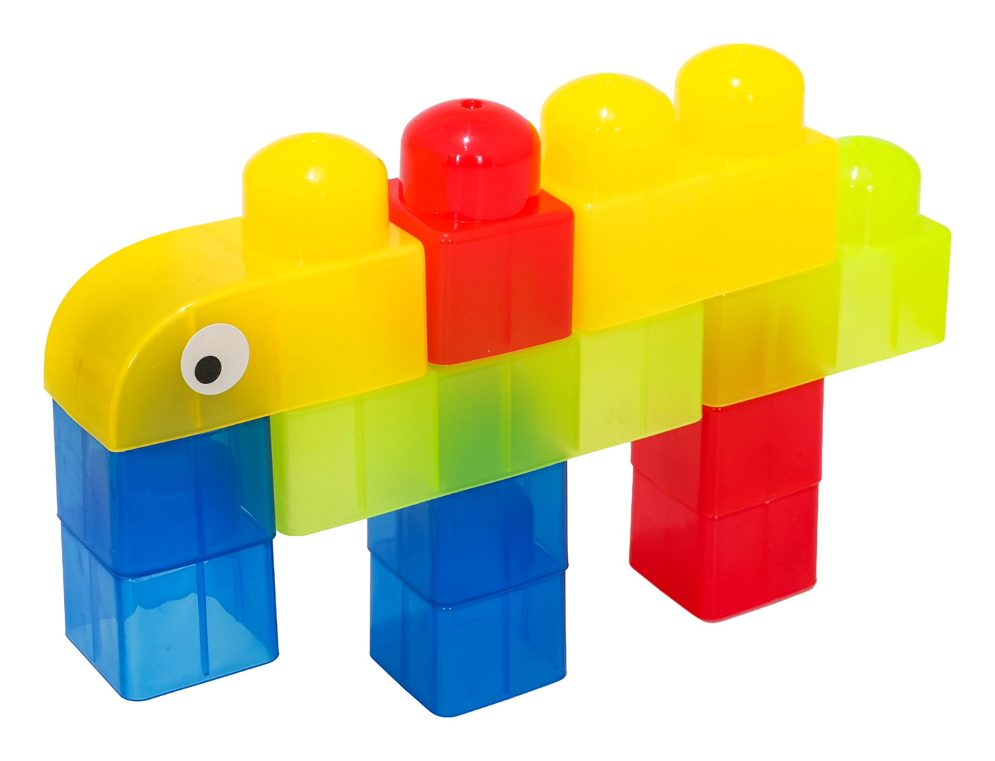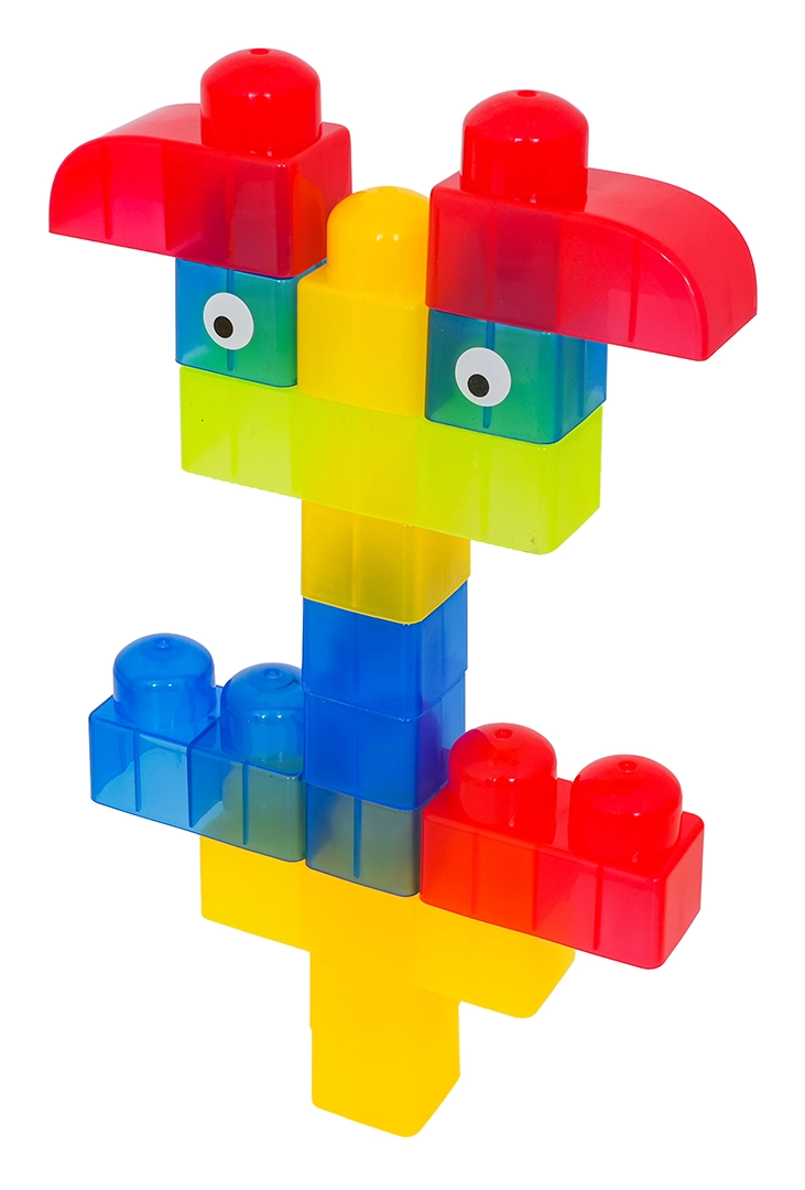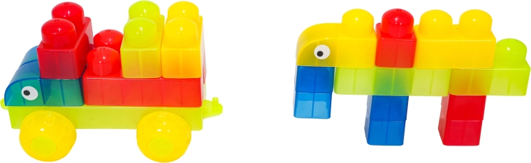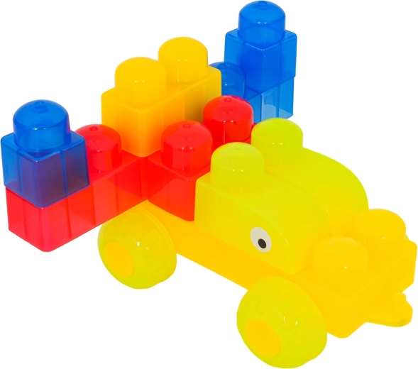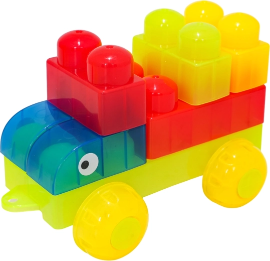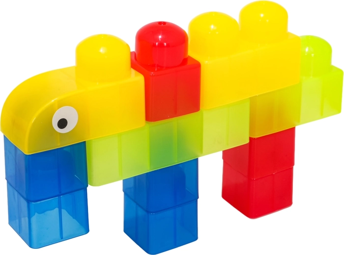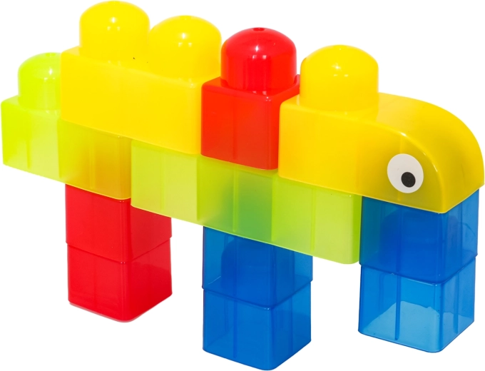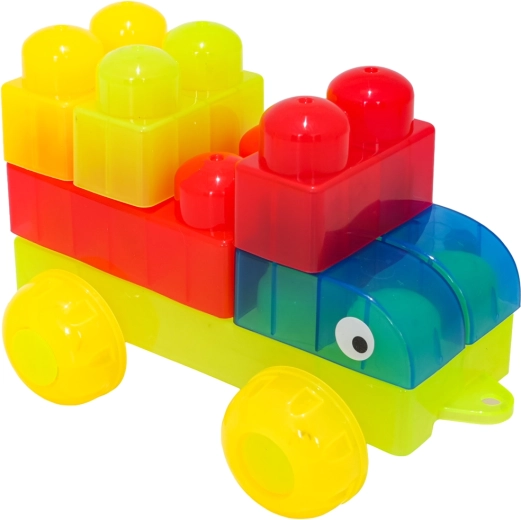 Dankzij de gevarieerde vormen (enkelvoudige, dubbele en drievoudige blokken, chassis met wielen en onderdelen met dakje) bouw je schattige diertjes, eenvoudige voertuigen en kleurrijke figuurtjes. Bijgevoegd zijn stickers met oogjes voor extra speelse expressie van de figuurtjes en een beeldhandleiding voor een snelle start. Bouwen verbetert de oog-handcoördinatie, fijne motoriek en stimuleert creatief spel.