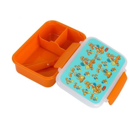 Praktische en schattige broodtrommel met hond van i-total, ideaal voor snacks naar school, werk en op uitstapjes. In de verpakking zit een bestekset – vork en lepel. De trommel kan in de vriezer en in de magnetron worden opgewarmd zonder deksel (max. 100 °C), waardoor hij zeer veelzijdig is voor dagelijks gebruik.