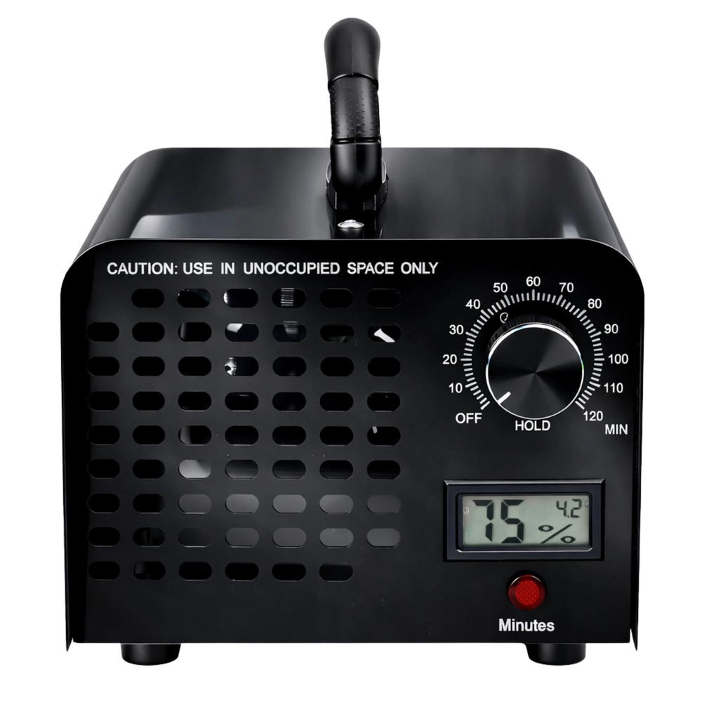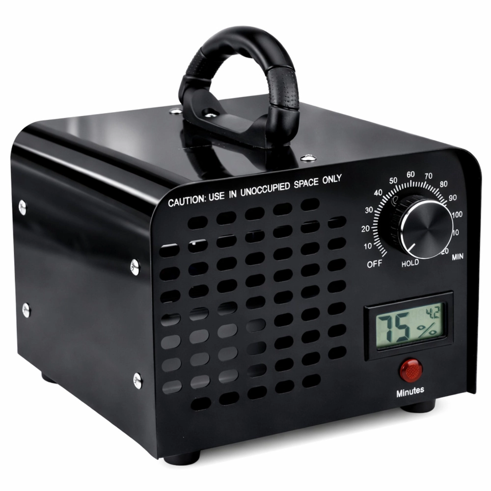 De krachtige LEAN ozongenerator deodoriseert en desinfecteert effectief lucht en oppervlakken in ruimtes en voertuigen. Dankzij de capaciteit van 60.000 mg/h verwijdert hij snel geur van rook, schimmel, dieren en vocht. Voorzien van een mechanische timer tot 120 minuten, een LCD‑percentage-indicator van de voortgang en een duurzame metalen behuizing voor betrouwbaar professioneel en thuisgebruik.