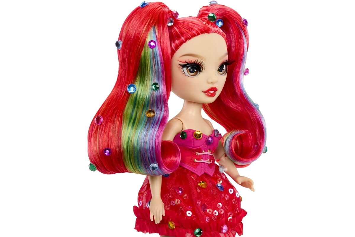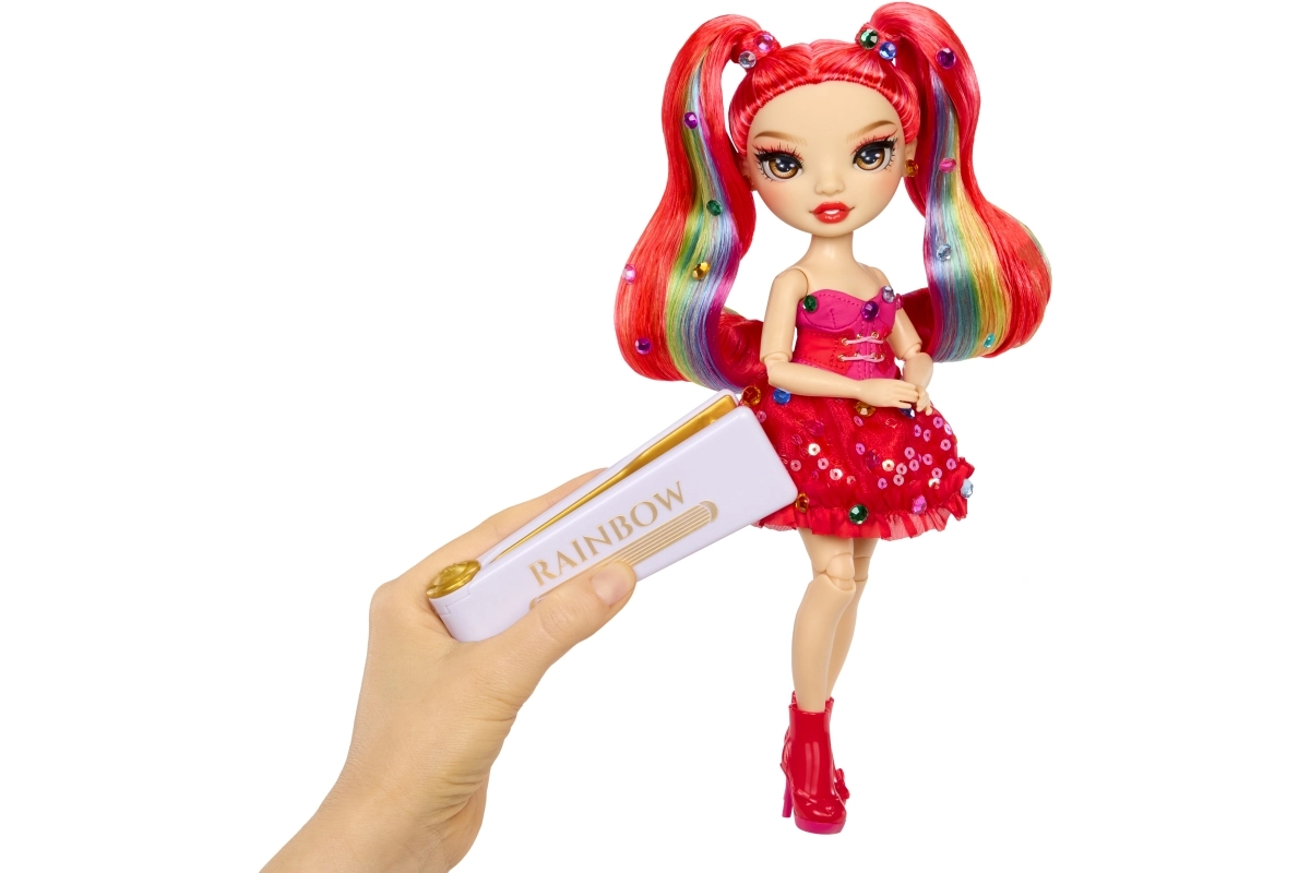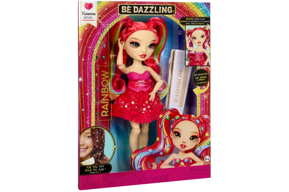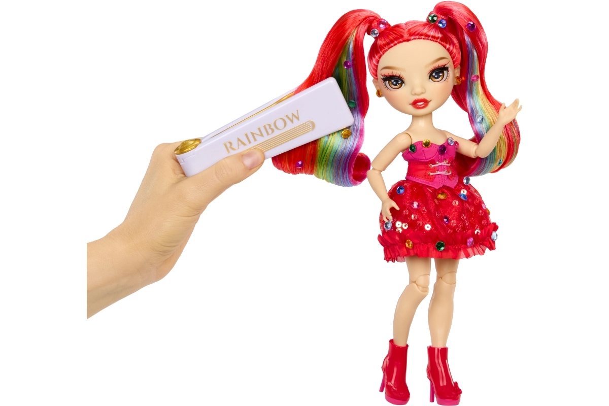 De Rainbow High-pop Vivienne Rouge brengt een krachtige rode energie naar je collectie, met mode geïnspireerd door het regenboogspectrum. Haar lange doorkambare haren met regenbooglokjes, glinsterende jurk en bijpassende schoenen maken indrukwekkende combinaties mogelijk om mee te spelen of om neer te zetten. Dankzij de gewrichten in armen, benen en hoofd poseer je haar eenvoudig in verschillende houdingen.