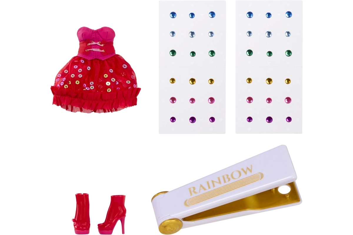 Met de meegeleverde Rainbow High-tool breng je snel en gemakkelijk kleurrijke steentjes aan in het haar of op de outfit, en creëer je in een mum van tijd een unieke glamlook. Deze set stimuleert creativiteit, zelfexpressie en de ontwikkeling van de fijne motoriek — een ideaal cadeau voor jonge stylisten en verzamelaars.