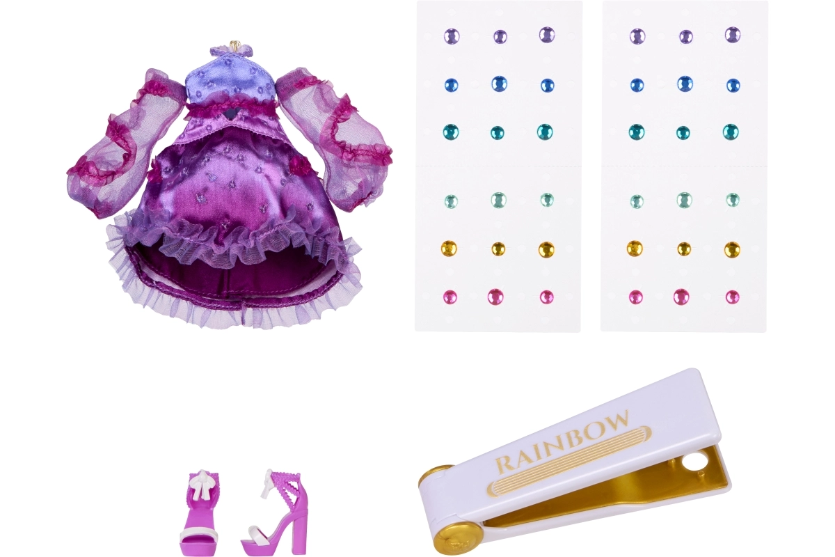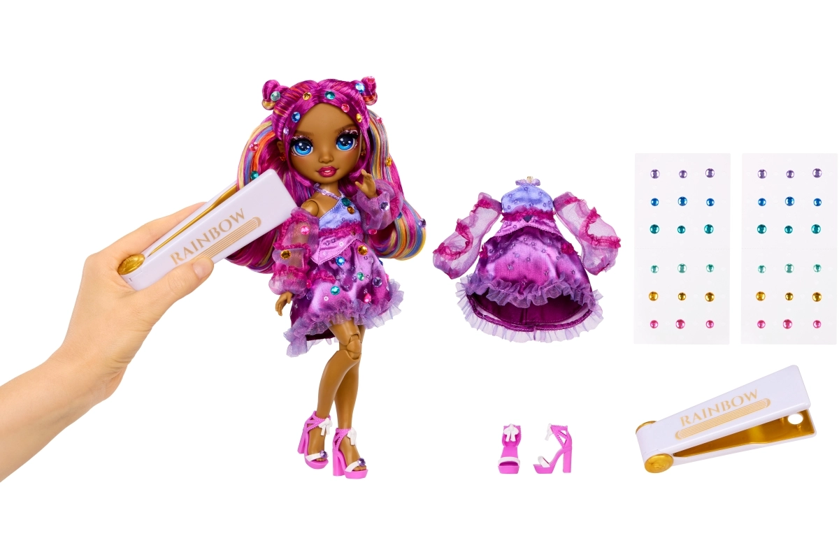 Met de RAINBOW krimptang breng je eenvoudig kleurrijke steentjes aan in het haar van de pop en op haar jurk voor een oogverblindende look.