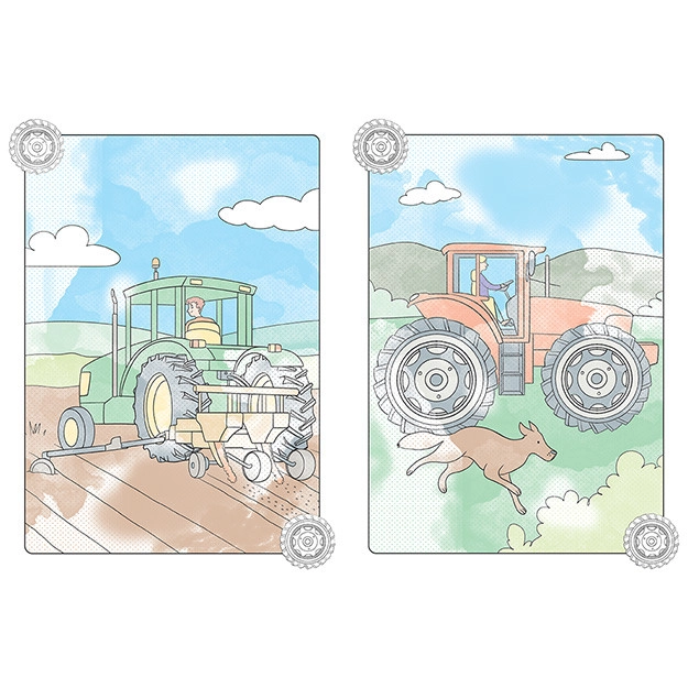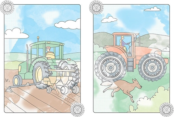 - 8 magische afbeeldingen met thema’s van tractors en landbouwmachines.