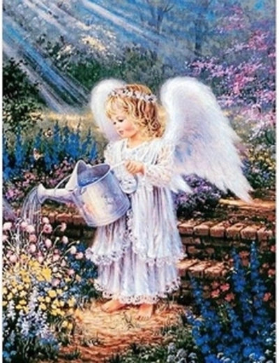 Diamantschilderen Engel met gieter in de tuin 30 × 40 cm