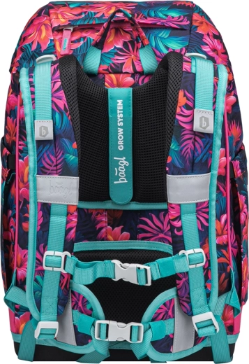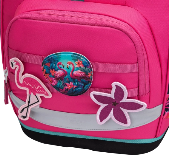 De BAAGL Airy Plus schoolrugzak met flamingo-motief combineert een moderne, speelse look met maximaal comfort en gezond dragen. Dankzij het gewicht van minder dan 1200 g belast hij de rug niet, terwijl het anatomisch gevormde rugpaneel met geïntegreerde aluminium versteviging bijdraagt aan een correcte lichaamshouding. Het meegroeiende Grow-systeem stel je eenvoudig in op drie maten, zodat de rugzak met het kind meegroeit.