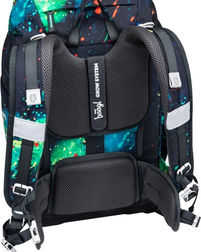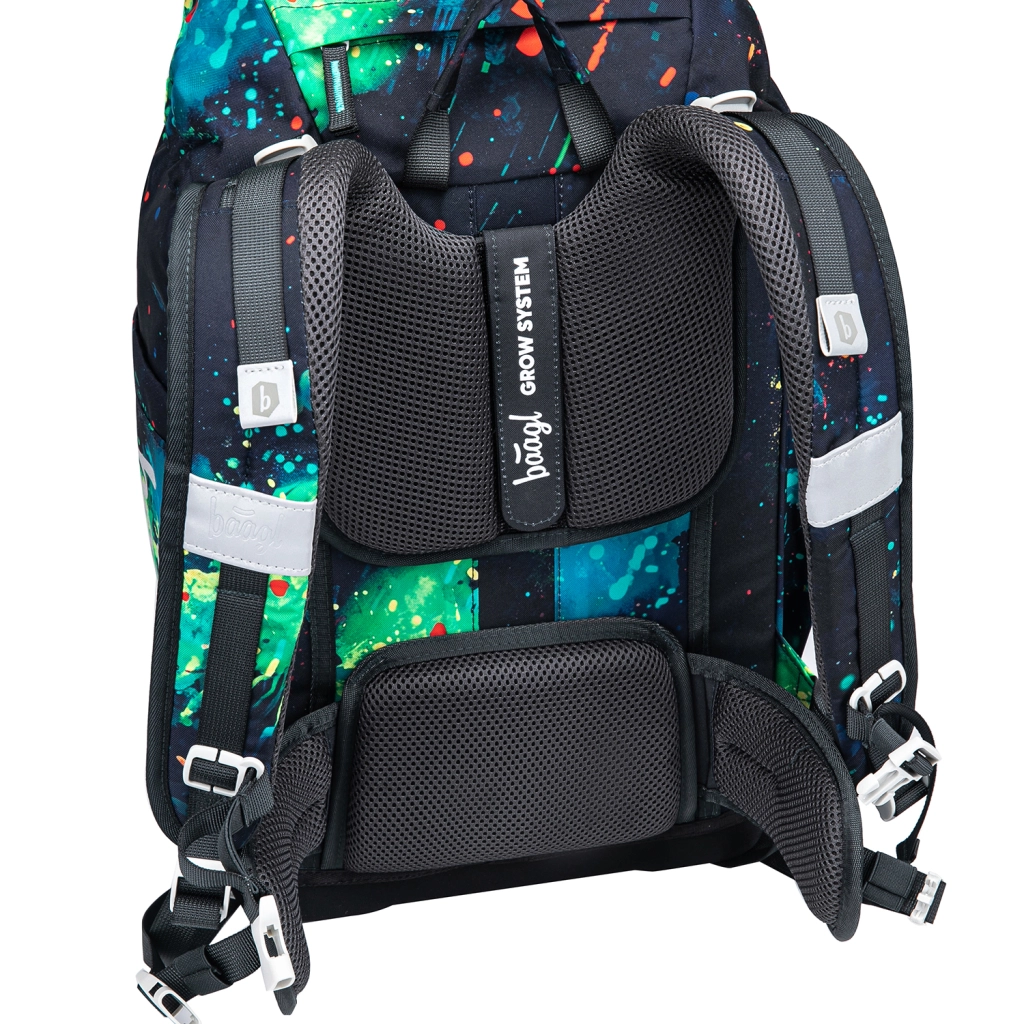 De schoolrugzak BAAGL Airy Plus Chill GRS combineert laag gewicht, ergonomie en doordachte indeling. De geïntegreerde aluminium versteviging en anatomisch gevormde rug ondersteunen een gezonde lichaamshouding, terwijl het groeiende rugsysteem Grow zich aanpast aan drie hoogteniveaus en met het kind meegroeit. Dankzij de ademende schouderbanden, borstband en de afneembare heupband wordt het gewicht gelijkmatig verdeeld en blijft de rugzak stabiel tijdens lopen en rennen.