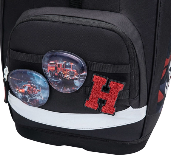 De rugzak is gemaakt van gerecycled, waterafstotend materiaal en voldoet aan de GRS-norm. Reflecterende elementen verhogen de veiligheid, terwijl verwisselbare Baaglies-badges kinderen in staat stellen hun eigen stijl te tonen. Het groeiende rugsysteem Grow biedt drie maten, zodat de rugzak met het kind meegroeit.