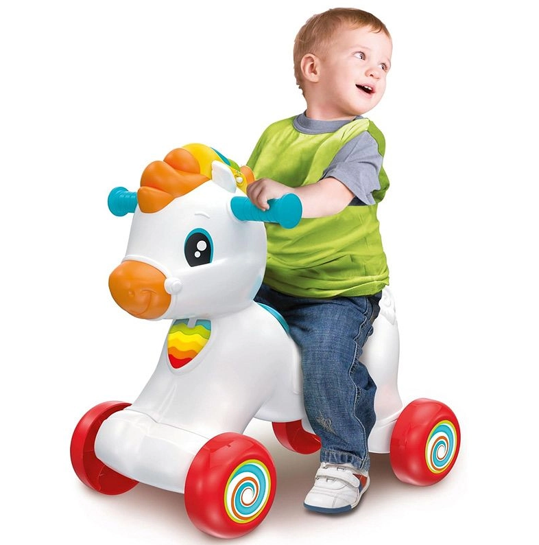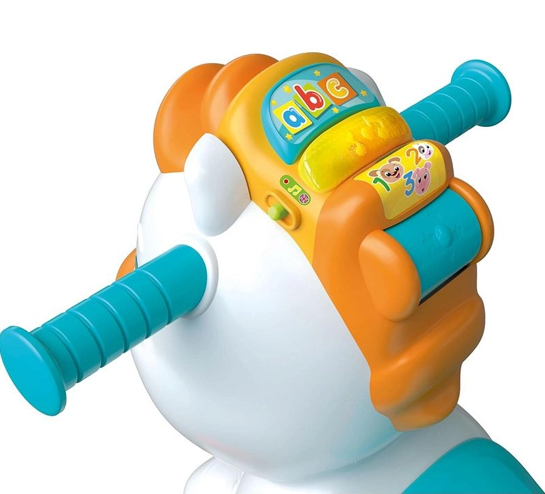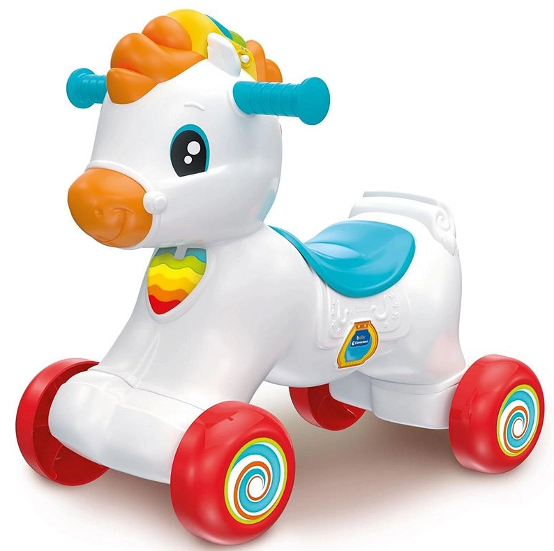 Het interactieve 3-in-1 paard CLEMENTONI groeit met je kind mee: van veilig schommelen, via de eerste stapjes met de loopwagen tot zelfstandig rijden als loopfiets. De brede basis en stabiele wielen zorgen voor comfortabel en zeker rijden, terwijl ergonomische handgrepen het vasthouden met kleine handjes vergemakkelijken.