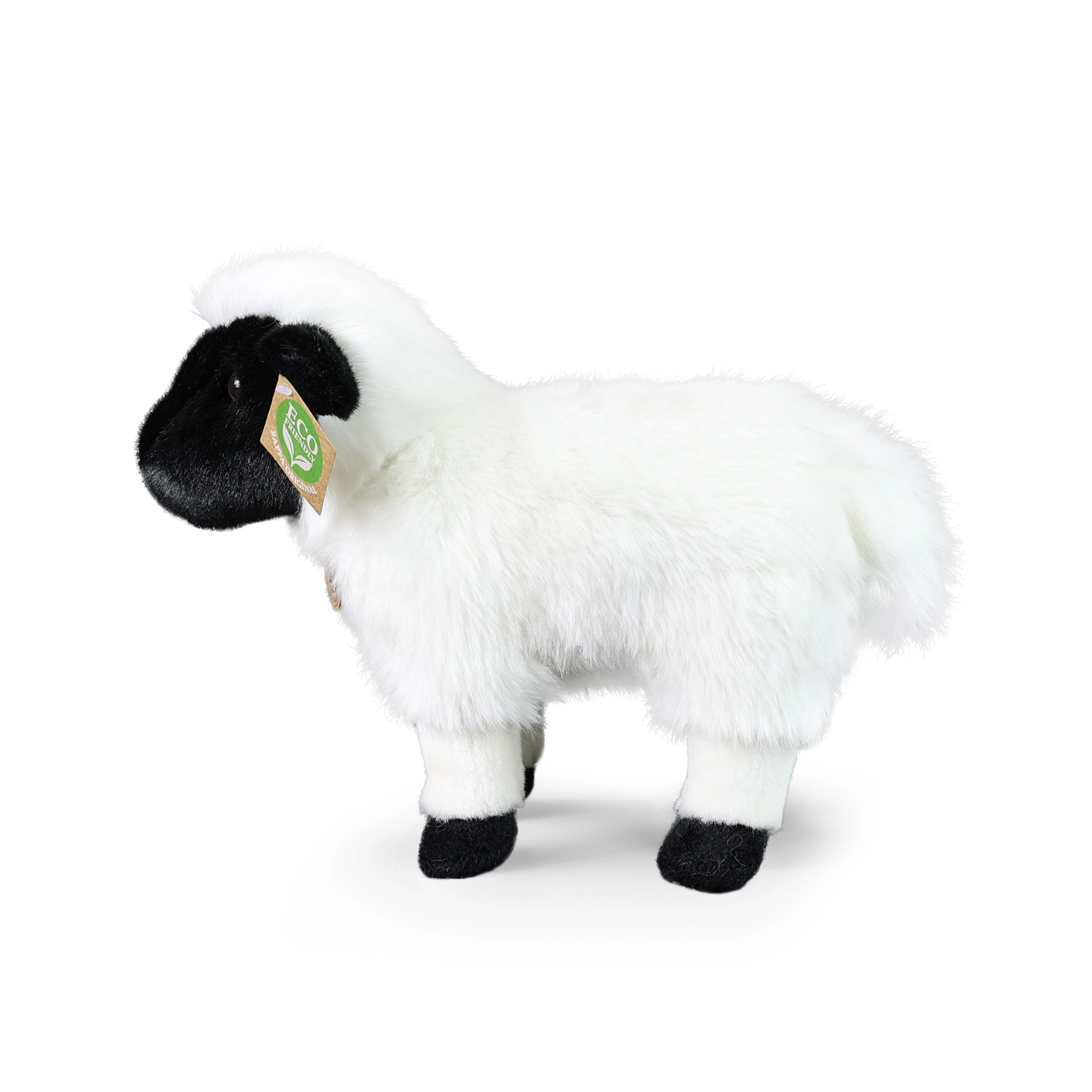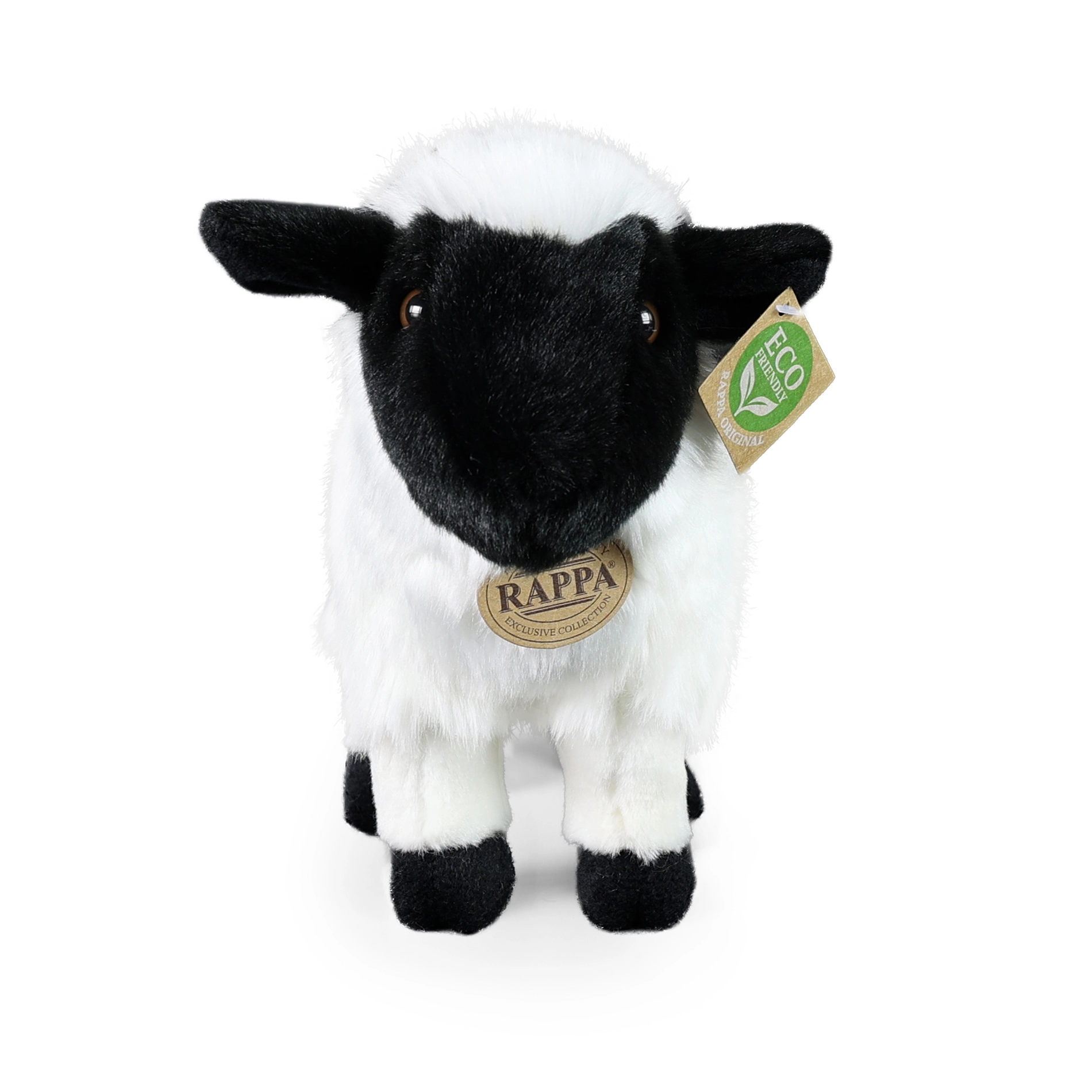 Schattig pluchen schaap van 27 cm uit de exclusieve RAPPA-collectie, gemaakt van hoogwaardige, heerlijk zachte materialen en dankzij het handwerk levensecht. De vulling van gerecyclede materialen (PET-flessen) is veilig zelfs voor pasgeborenen, dus perfect om mee te knuffelen en spelen en ondersteunt een duurzame speelgoedkeuze.