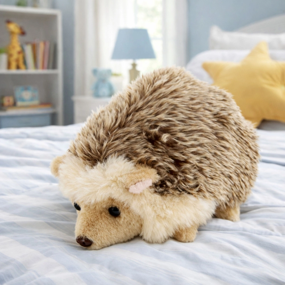 Deze pluchen egel is gemaakt van hoogwaardige, zachte pluche die zacht is voor de kinderhuid en uitnodigt om te knuffelen. Natuurlijke bruin‑beige tinten en zorgvuldig uitgewerkte details – snuitje, oortjes en zachte “stekels” – geven de knuffel een realistische uitstraling.