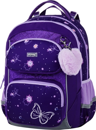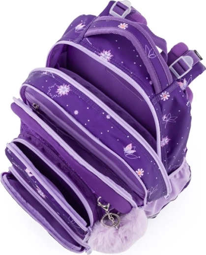 De schoolset OXY Jumper Flowers is ontworpen voor comfortabel dagelijks gebruik en overzichtelijke organisatie van schoolbenodigdheden. Twee ruime hoofdvakken bieden plaats aan boeken en schriften, het voorvak is ideaal voor een lunchbox en de zijvakken van mesh houden een fles altijd binnen handbereik. De anatomisch gevormde rugplaat en de verende schouderbanden met borstriem verdelen de last en verhogen het draagcomfort.
