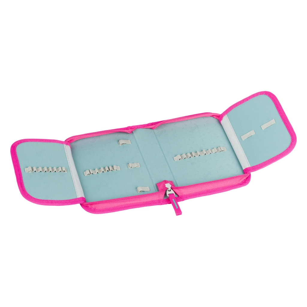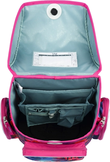 De complete schooluitrusting in het uniforme design FLAMINGO’S maakt zowel leerlingen als ouders blij. De ergonomische boekentas met het verstelbare ERGO ADJUSTABLE SYSTEM groeit met het kind mee, heeft een gewatteerde rug, verstelbare schouder-, borst- en zijriemen en een betrouwbare magnetische Fidlock-sluiting voor eenvoudig en snel openen. Waterafstotende materialen, een stabiele bodem en reflecterende elementen verhogen de duurzaamheid en veiligheid tijdens het dagelijks gebruik.