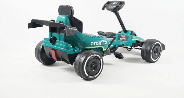 Stijlvolle kindertrapkart geïnspireerd door het merk ASTON MARTIN met een stevige constructie, soepele rit en uitstekende wendbaarheid. Voorzien van kettingaandrijving met volledig afdekking, kogellager EVA-wielen voor stille rit, handrem en versnelling voor voor-/achteruit en vrijloop. Maximaal draagvermogen 25 kg en een sportieve, geprofileerde zitting voor comfort en veiligheid.
