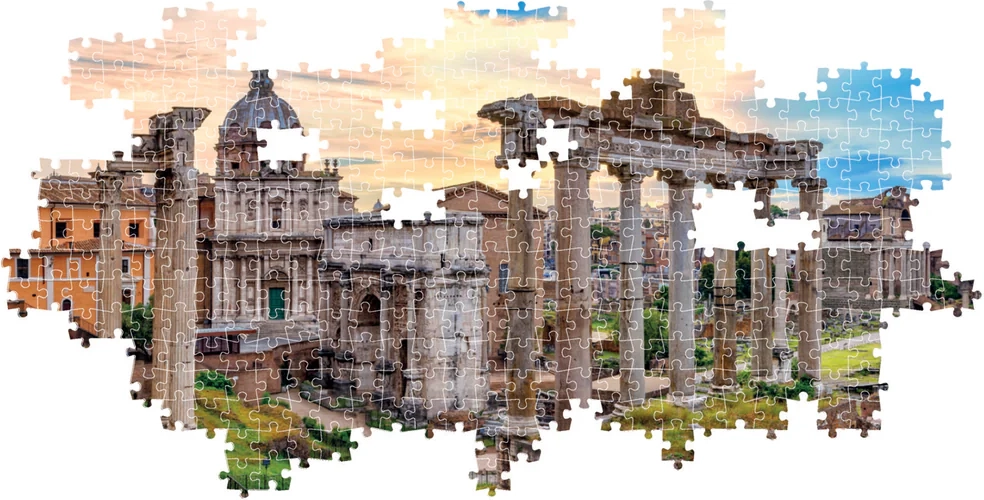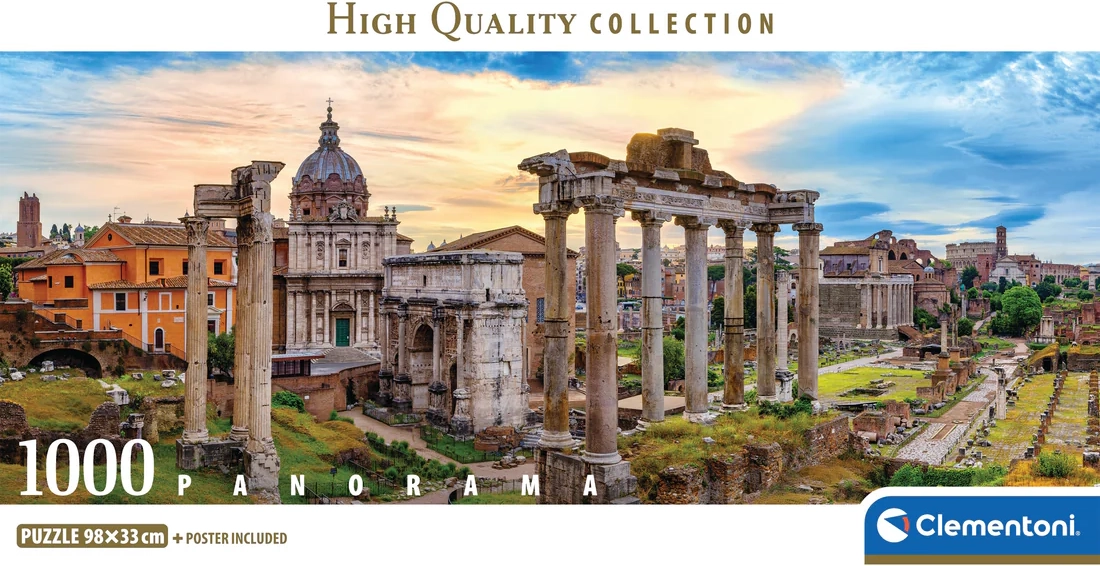 Geniet van ontspanning met een panoramisch beeld van Rome bij zonsondergang. Deze kwalitatieve puzzel van Clementoni biedt 1000 stukjes, nauwkeurige uitsnedes en een indrukwekkend formaat van 98 × 33 cm na het leggen.