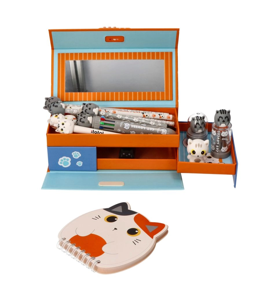 Verfraai schriften, agenda’s en kaarten met kattenafdrukken. Perfect voor de kinderkamer, schoolspullen en knutselen thuis.