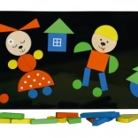 Het magnetische bord en de houten stukjes zijn de sleutelonderdelen van deze set. Deze stukjes met magneet stellen kinderen in staat om diverse motieven en verhaaltjes samen te stellen. De set is niet geschikt voor kinderen jonger dan 3 jaar, omdat deze kleine onderdelen bevat die verstikkingsgevaar kunnen opleveren.