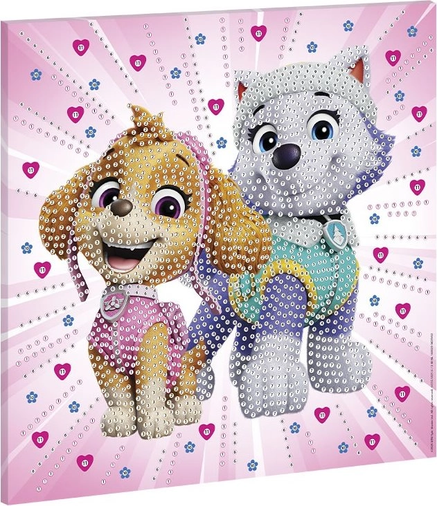 Ontdek de magie van diamantschilderen en maak je eigen sprankelend kunstwerk met de favoriete helden van PAW Patrol. Het canvas van 30 × 30 cm is voorbedrukt en verdeeld in genummerde vakjes, zodat je eenvoudig ziet waar elk steentje hoort. Deze creatieve set is ideaal voor relaxte momenten en het ontwikkelen van de fijne motoriek.