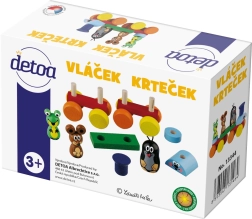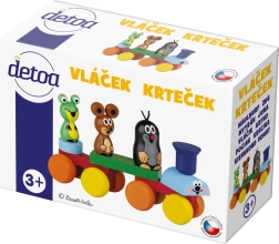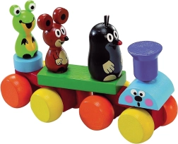 Schattig houten treintje uit de licentieserie MOLLETJE van de Tsjechische fabrikant Detoa, leuk voor kinderen én ouders. Vrij combineren en variëren in de volgorde van de figuurtjes stimuleert de creativiteit; de locomotief heeft twee gezichten – vrolijk en verbaasd. Het speelgoed is gemaakt van hoogwaardig Europees hout, is gezondheidsveilig en verpakt in een stevige kartonnen doos.