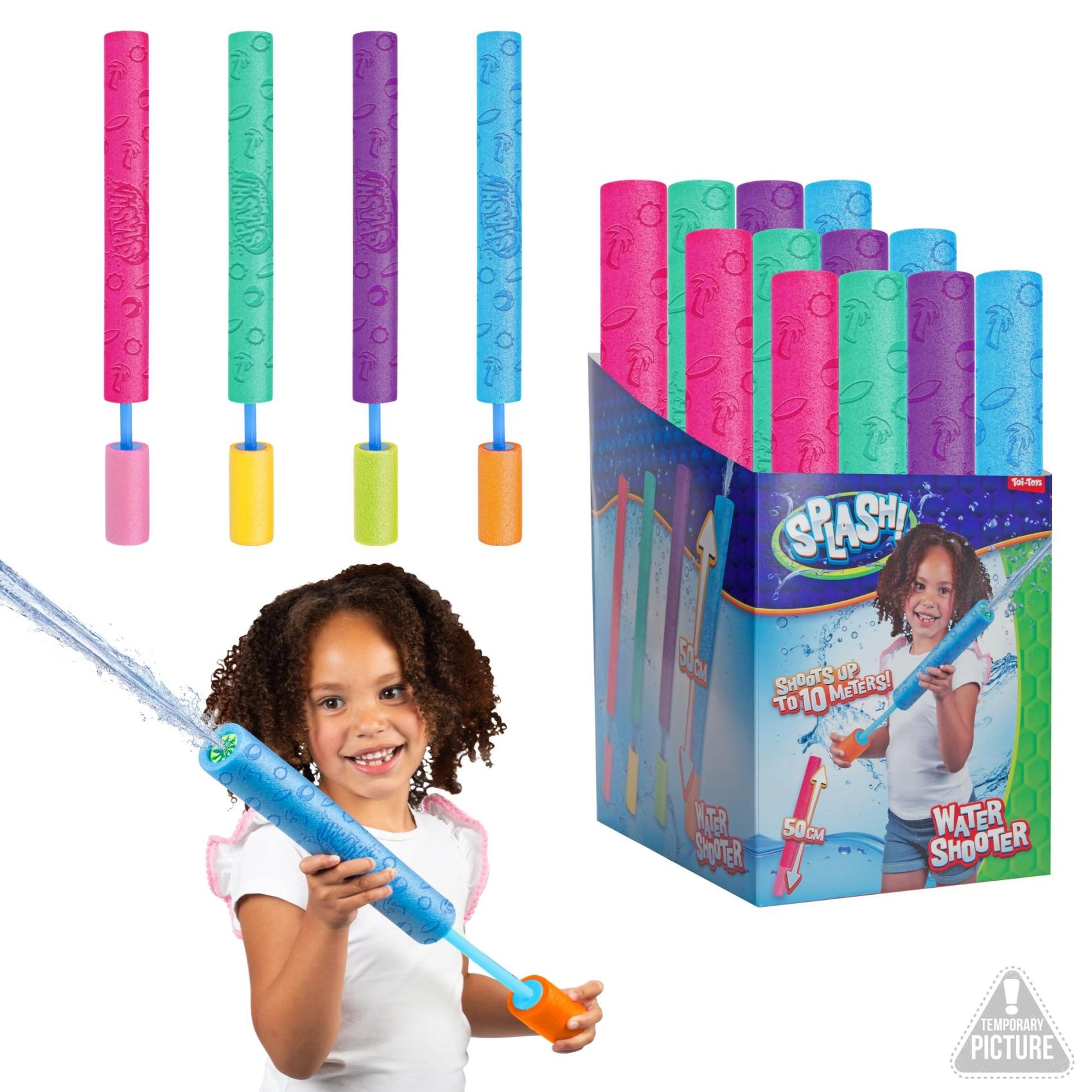 Geniet volop van de zomer met dit schuim-waterpistool van 50 cm, ideaal voor aan het water, in de tuin of bij het zwembad. Vul het gewoon met water, trek uit en schiet een krachtige waterstraal tot meerdere meters ver. De lichte en veilige schuimconstructie is ook geschikt voor jongere kinderen. In de verpakking vind je 4 vrolijke kleuren, allemaal in een praktische doos van 24 stuks – perfect voor zomers spel, watergevechten en familiefun.
