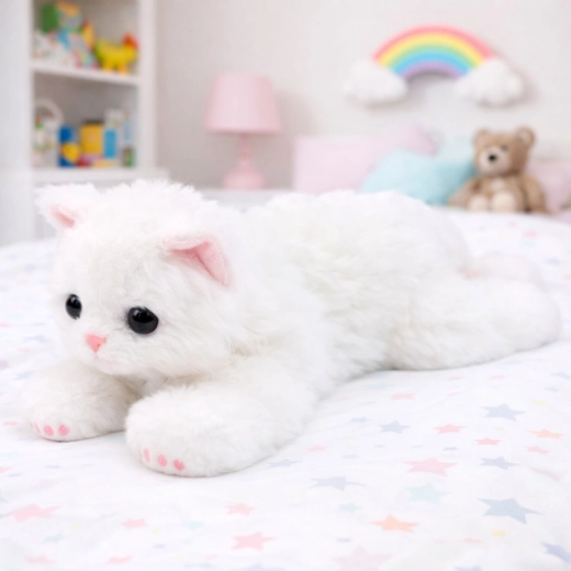 Deze witte pluchen kater is gemaakt van hoogwaardige, zachte pluche met een aangenaam gevoel. Fijne haartjes, zachte pootjes en een schattig snoetje zorgen voor een authentieke uitstraling die de fantasie prikkelt en uitnodigt tot knuffelen.