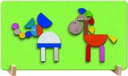 Met 44 gekleurde houten stukjes met magneet maken kinderen tientallen motieven – van dieren tot eenvoudige bouwwerken. Ideaal voor het ontwikkelen van fantasie en zelfstandig spel.