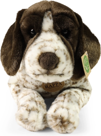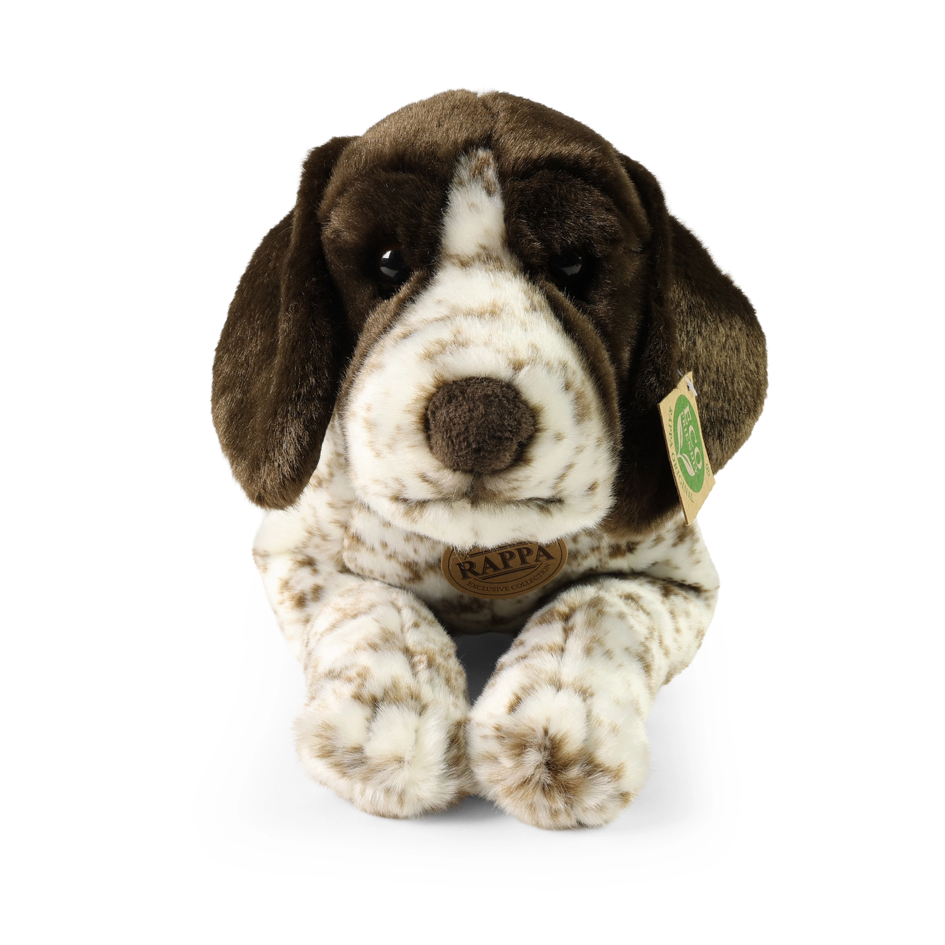 Een schattige pluchen hond van het ras Duitse staande hond met een lengte van 43 cm, gemaakt van superzachte pluche en behorend tot de exclusieve Rappa-collectie. Dankzij het handgemaakte vakmanschap oogt hij realistisch, is hij veilig vanaf de geboorte en de eco-vulling van gerecyclede materialen is vriendelijk voor het milieu.