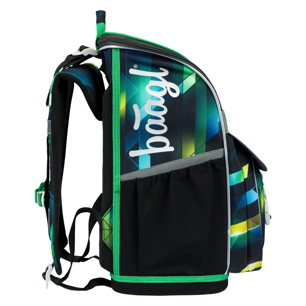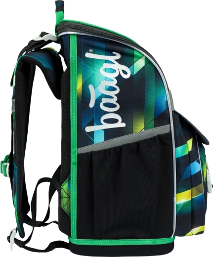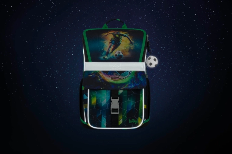 De BAAGL Zippy Voetbal schoolset is een ideale keuze vanaf groep 3. De ergonomische aktetas met het schuifbare ERGO ADJUSTABLE SYSTEM past zich perfect aan het postuur aan, heeft een lichte maar stabiele constructie, een klep die kan openklappen voor makkelijke toegang vanaf de bank, en een doordachte interne organisatie. De stijl wordt verenigd door een aantrekkelijk voetbalmotief in neongroene en blauwe tinten.