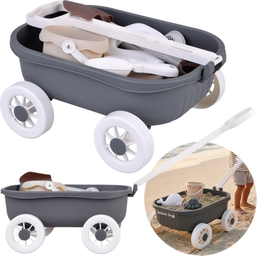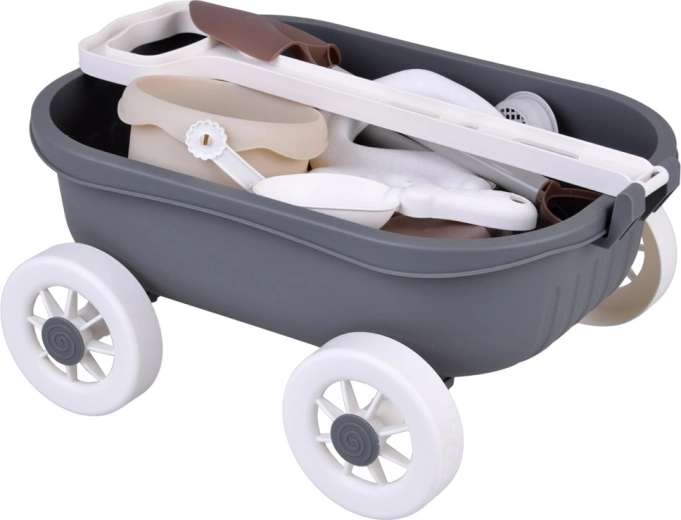 De elegante zandset is ideaal voor kleine bouwers die graag kastelen, tunnels en zandvormen maken. Dankzij de robuuste kar met handgreep verplaatsen kinderen moeiteloos alle accessoires en materialen naar de plek waar ze aan het spelen zijn. De neutrale kleurstelling in tinten grijs, wit en beige oogt strak en modern.