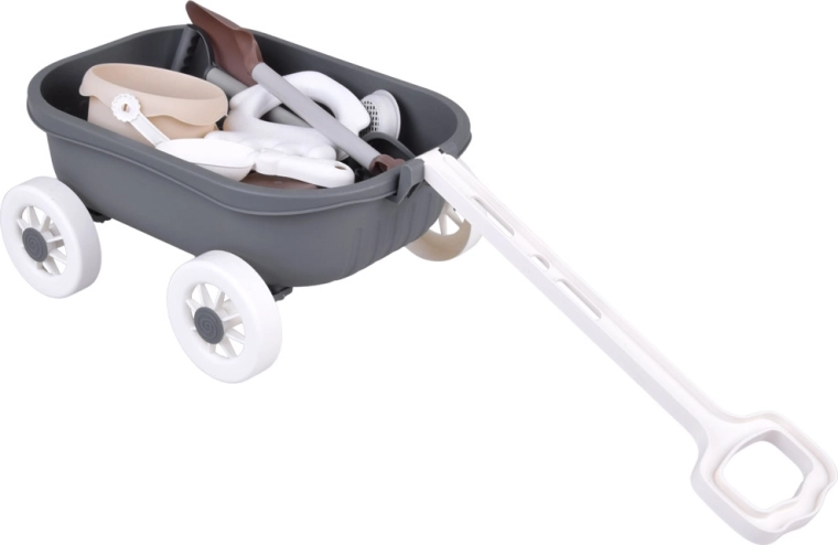 De diepe bak, afneembare trekstang en stabiele, brede wielen zorgen voor gemakkelijk transport van zand, speelgoed en gereedschap over diverse ondergronden – van tuin tot strand.