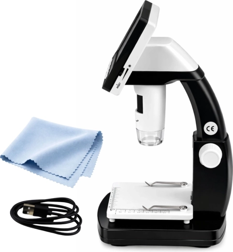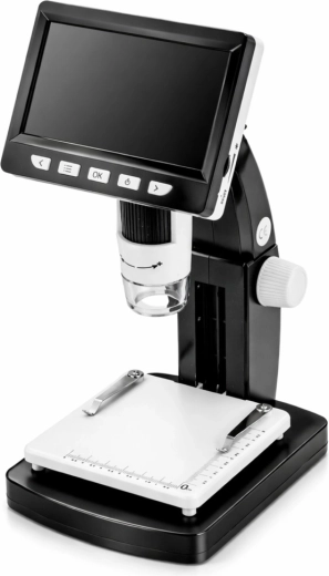 Ontdek de details van de wereld om je heen met deze digitale microscoop, die een scherp 4,3" IPS‑display, hoge vergroting tot 1000× en precieze handmatige scherpstelling combineert. Dankzij 8 LED's zie je fijne structuren van materialen, elektronica of biologische monsters onder alle omstandigheden.