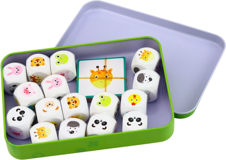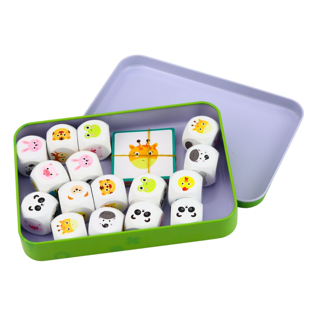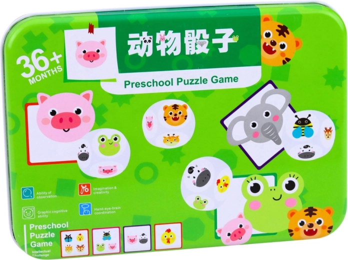Slim spel voor kinderen dat logisch denken, cognitieve vaardigheden en coördinatie ontwikkelt. De taak is om met houten blokken een dierenafbeelding te leggen volgens een patroonkaart – geweldig plezier thuis, in de kleuterschool en onderweg dankzij het praktische metalen doosje.