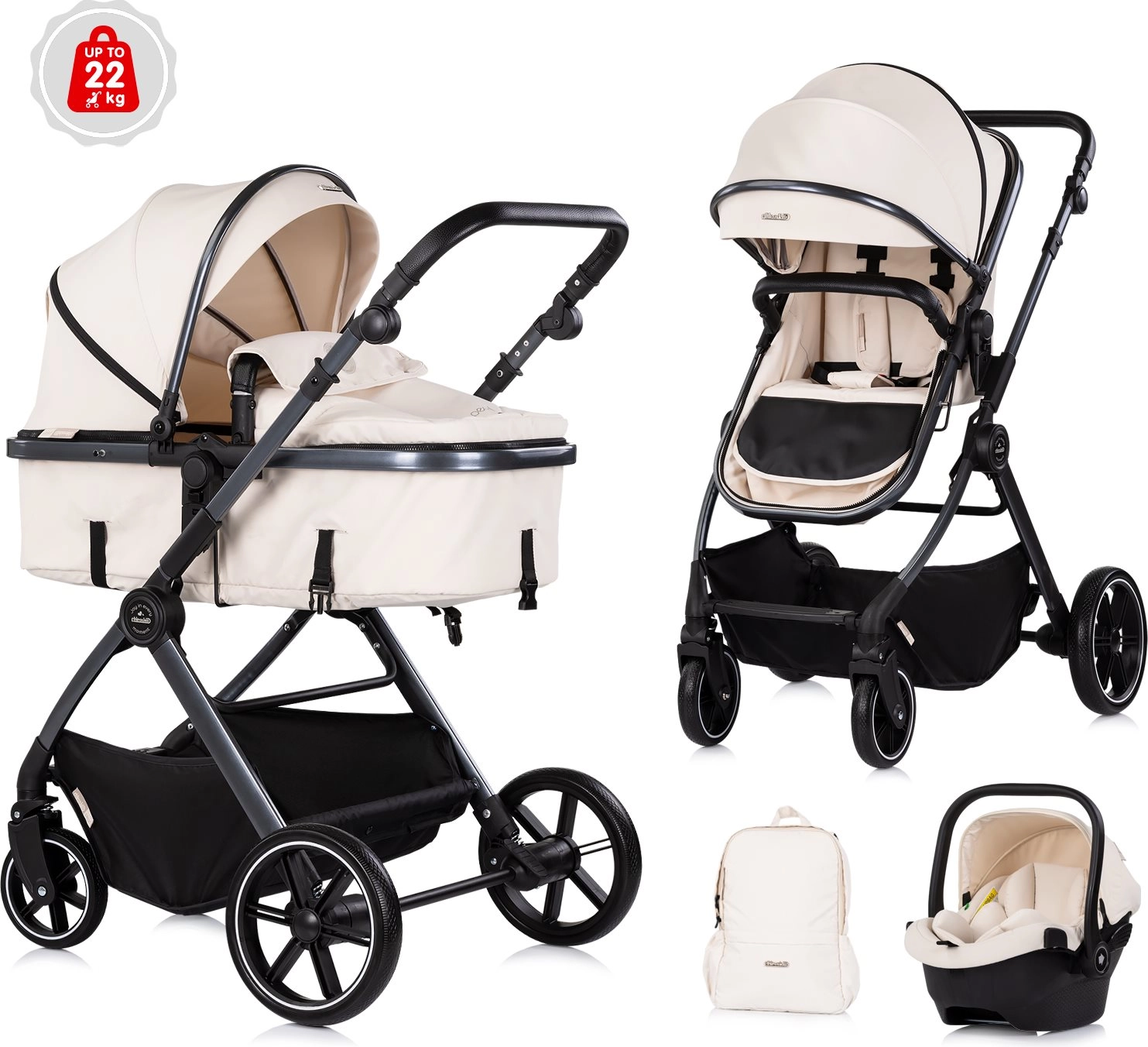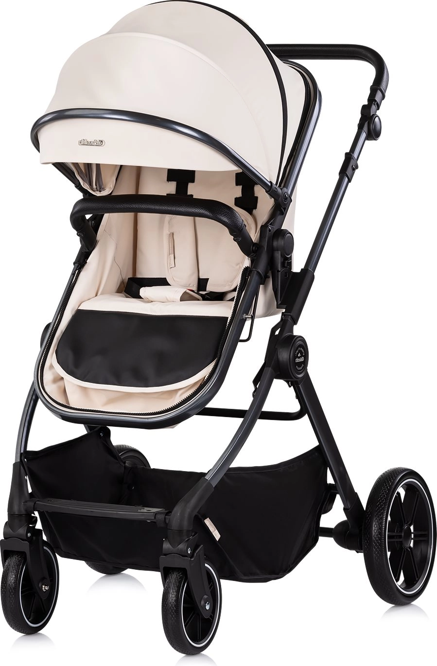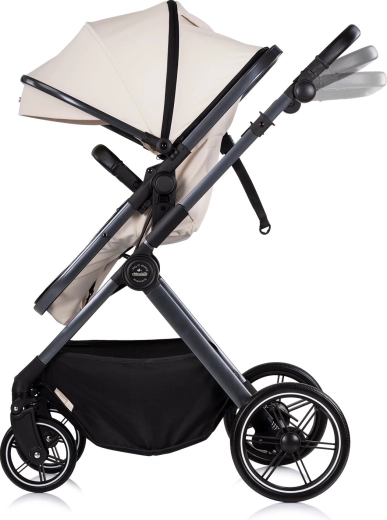 Stijlvolle en praktische kinderwagen CHIPOLINO Pearl 2-in-1 in de elegante tint Cashmere biedt een zitgedeelte dat kan worden omgevormd tot een wieg, een uitbreidbare kap met kijkvenster en geveerde wielen voor een soepele rit in de stad en in het park. Dankzij de in hoogte verstelbare duwbeugel, 5-puntsgordels en een ruime mand is hij ideaal voor dagelijks gebruik en langere uitstapjes.